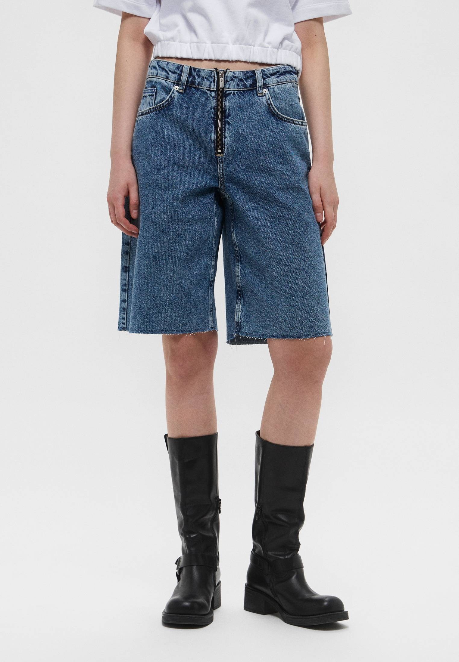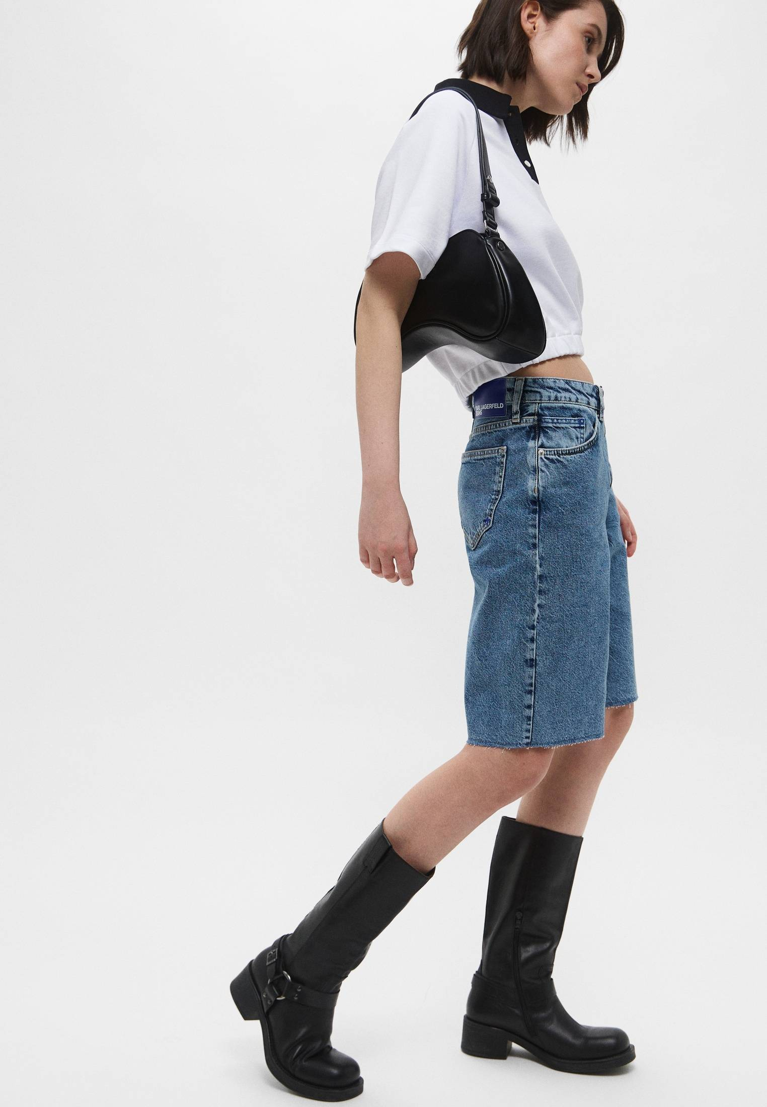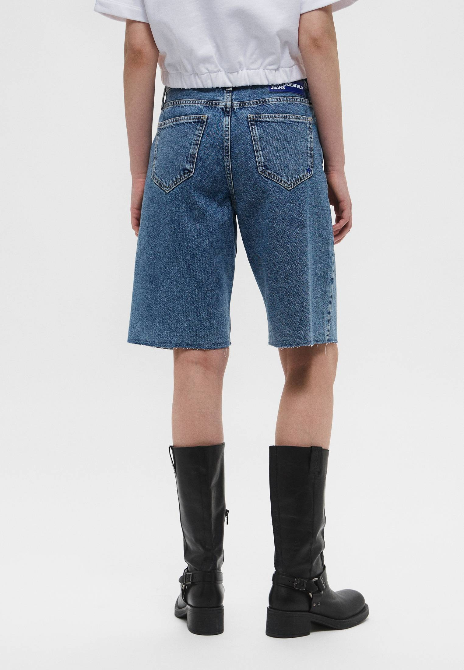 - Синие джинсовые шорты от Karl Lagerfeld Jeans с необработанными краями — прекрасный трендовый вариант для пляжных или повседневных летних образов. Модель с акцентной застежкой на молнию выполнена из хлопкового денима. Задняя часть пояса оформлена фирменным патчем с логотипом бренда. Сочетайте изделие с футболками, облегающими топами, блузами и рубашками, представленными в ассортименте BNS Club. Дополните образ шлепанцами, сандалиями, кедами или стильными казаками.