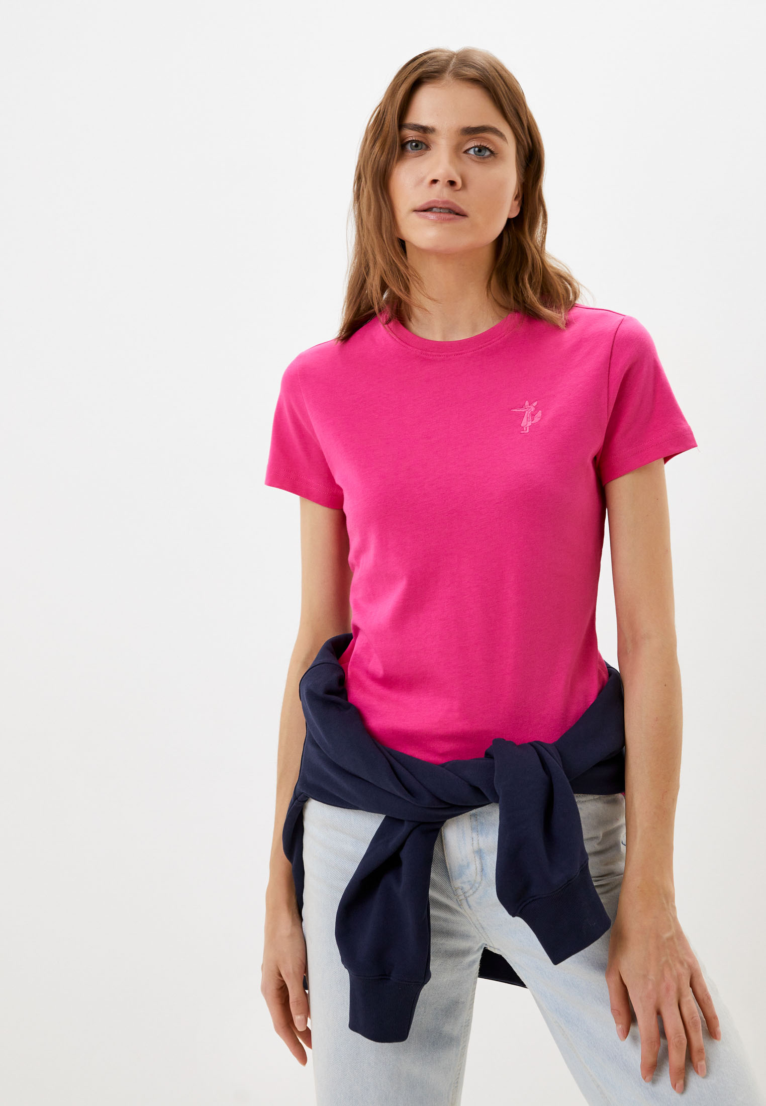- Базовая женская футболка из однотонного хлопка — этот материал высокого качества обладает дышащими свойствами и приятен к телу. Модель полуприлегающего кроя с короткими рукавами и круглым вырезом украшена миниатюрной вышивкой в тон ткани. Футболка подойдет для повседневных образов, а также как одежда для дома. Носите ее как самостоятельную вещь или под жакет.