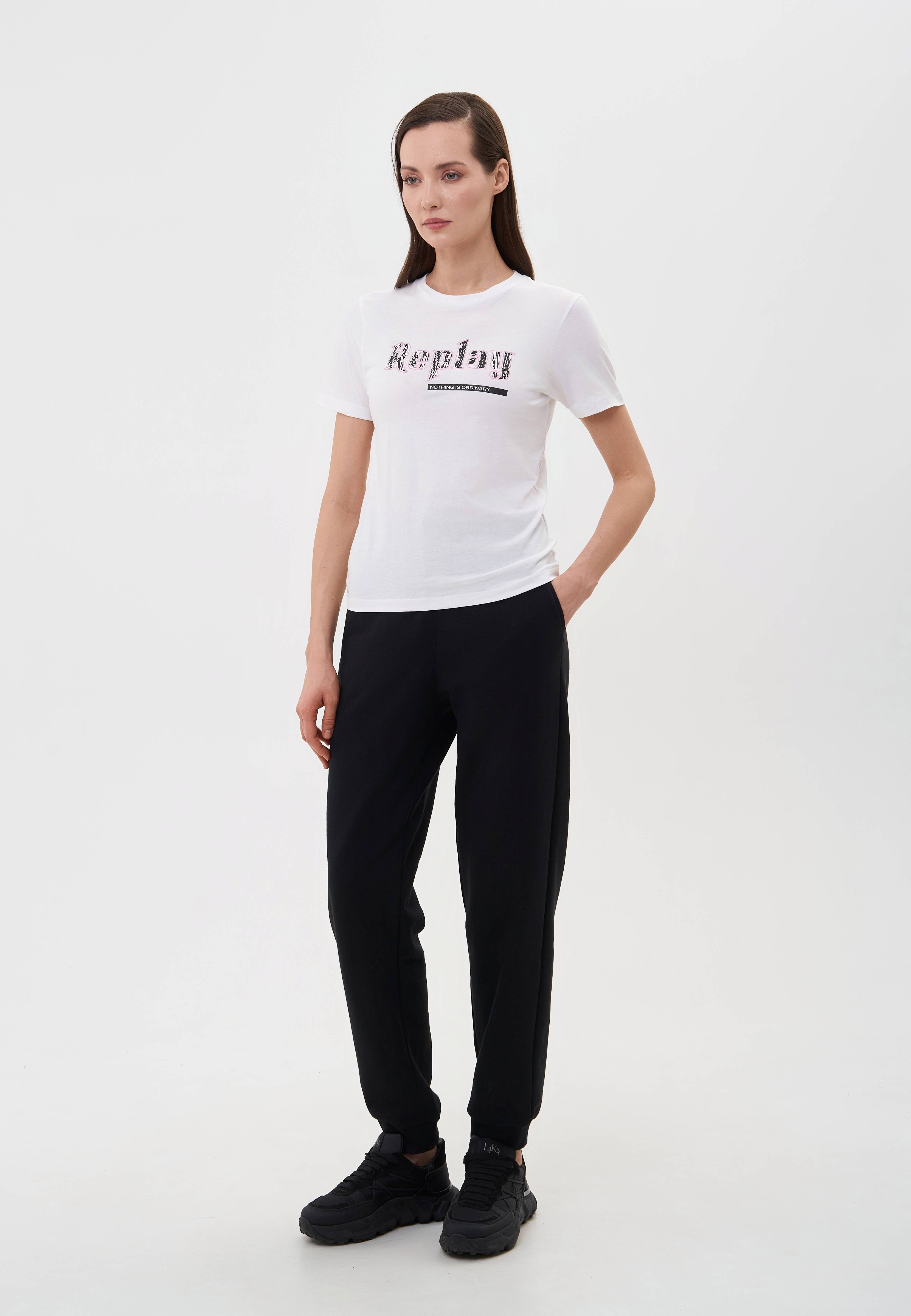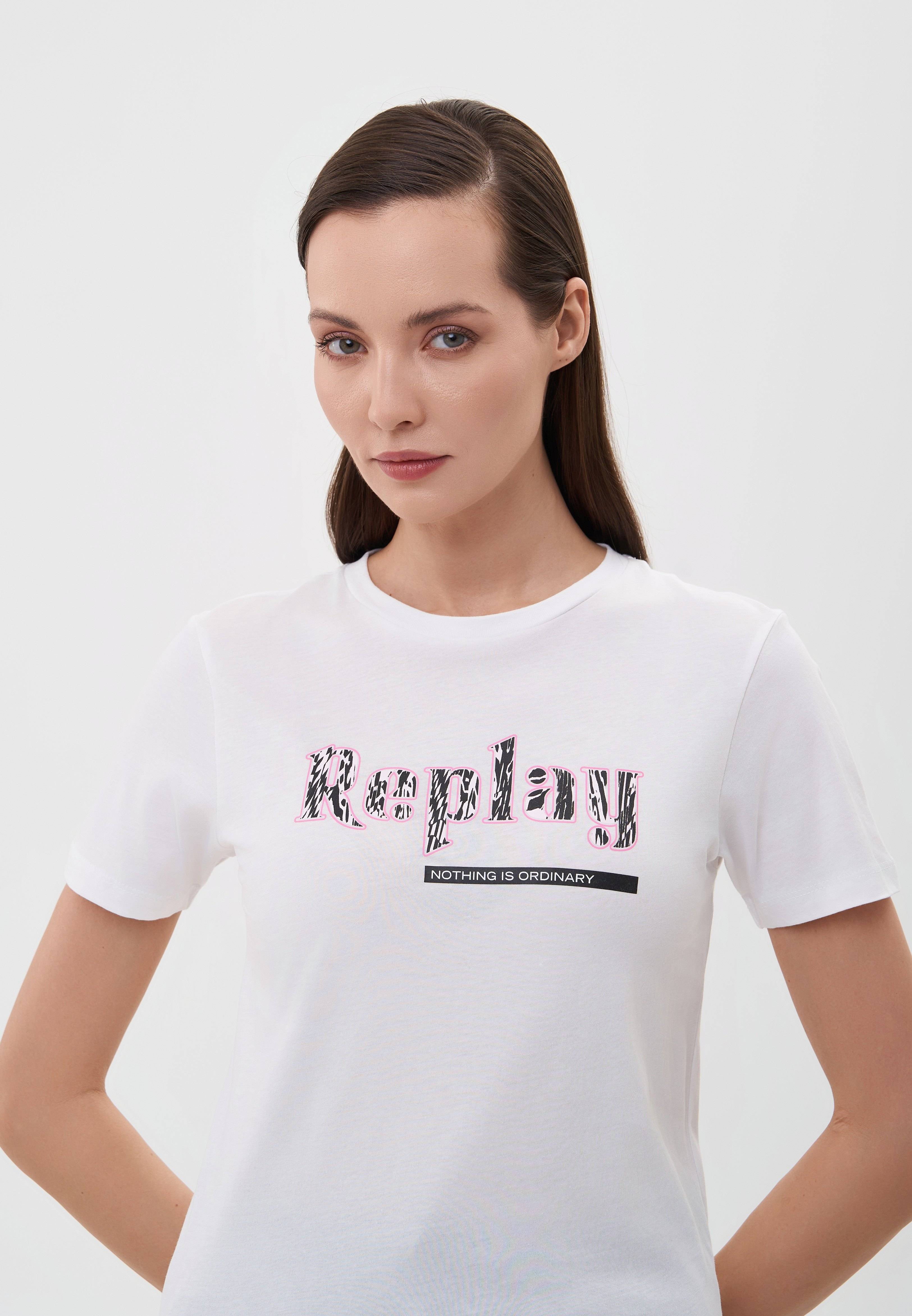 - Универсальный элемент женского гардероба, который прекрасно впишется в любой образ — однотонная белая футболка прямого кроя с контрастным дизайном. Модель с круглым вырезом горловины выполнена из мягкого, приятного на ощупь 100% хлопкового трикотажа. Передняя часть футболки украшена лаконичным принтом Replay. Сочетайте изделие со спортивными или повседневными брюками, джинсами любого кроя, кроссовками или кедами из ассортимента BNS Club.