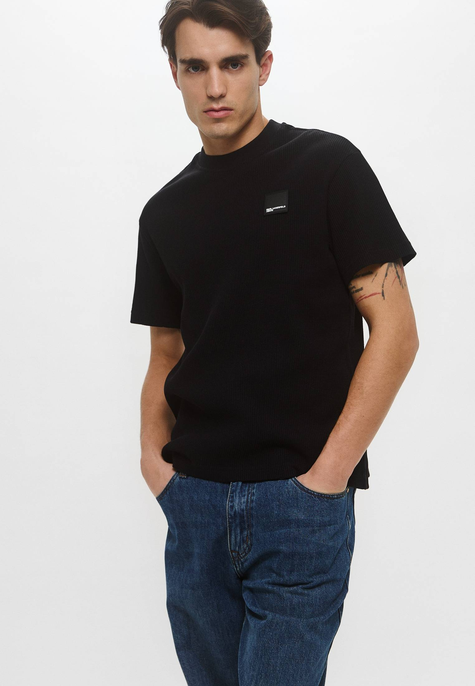 - Повседневная модель умеренно свободного кроя создана для вашего базового гардероба! Эта классическая футболка с круглым вырезом горловины выполнена из органического хлопка и украшена фирменным логотипом Karl Lagerfeld Jeans на груди. Изделие будет прекрасно сочетаться с широкими или зауженными джинсами, брюками, кроссовками и кедами из широкого ассортимента BNS Club.