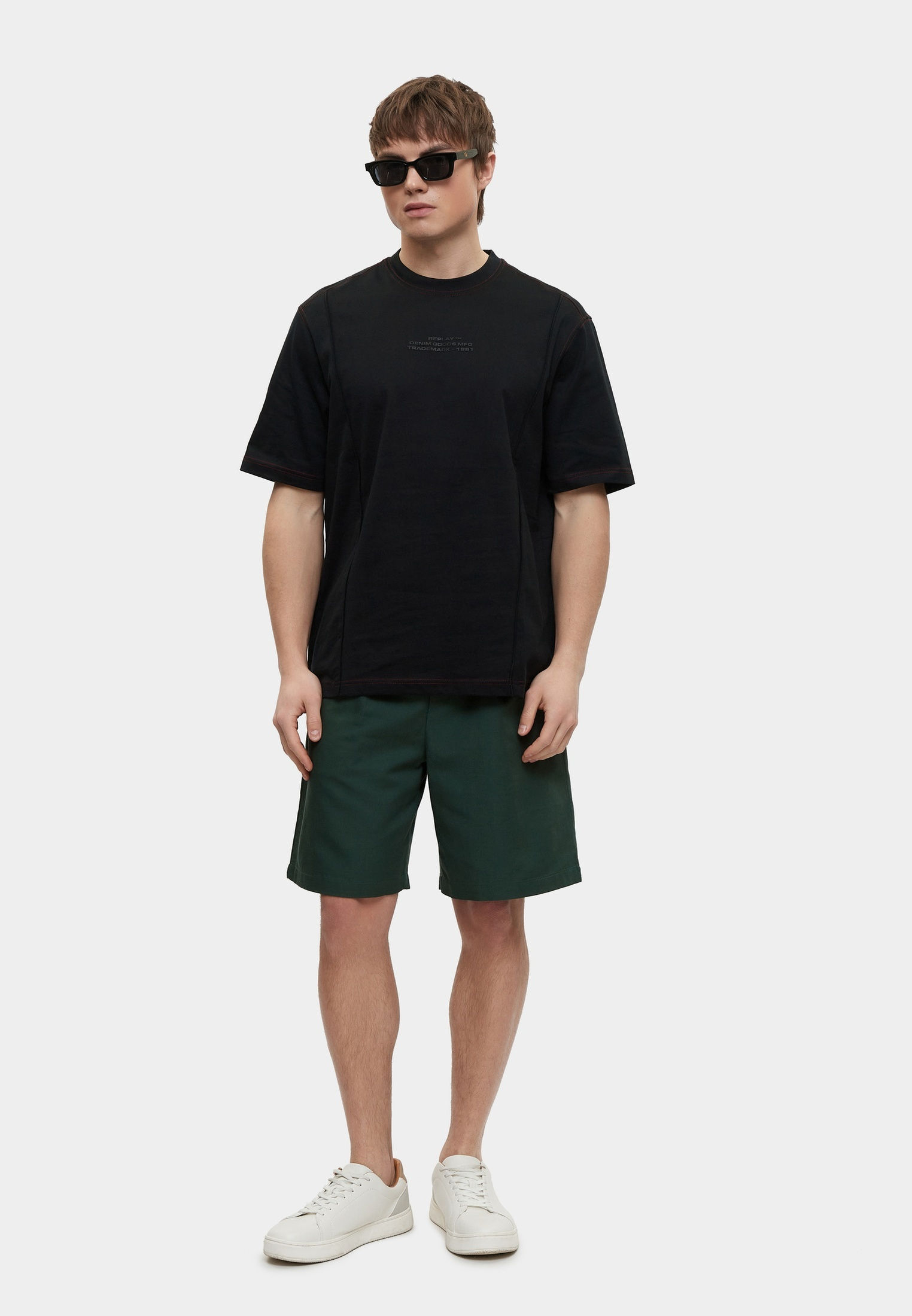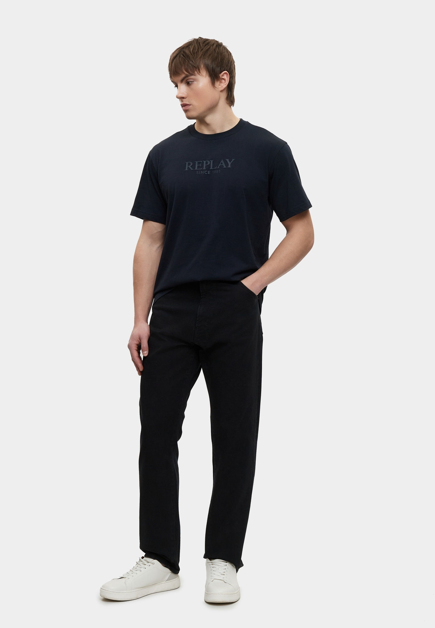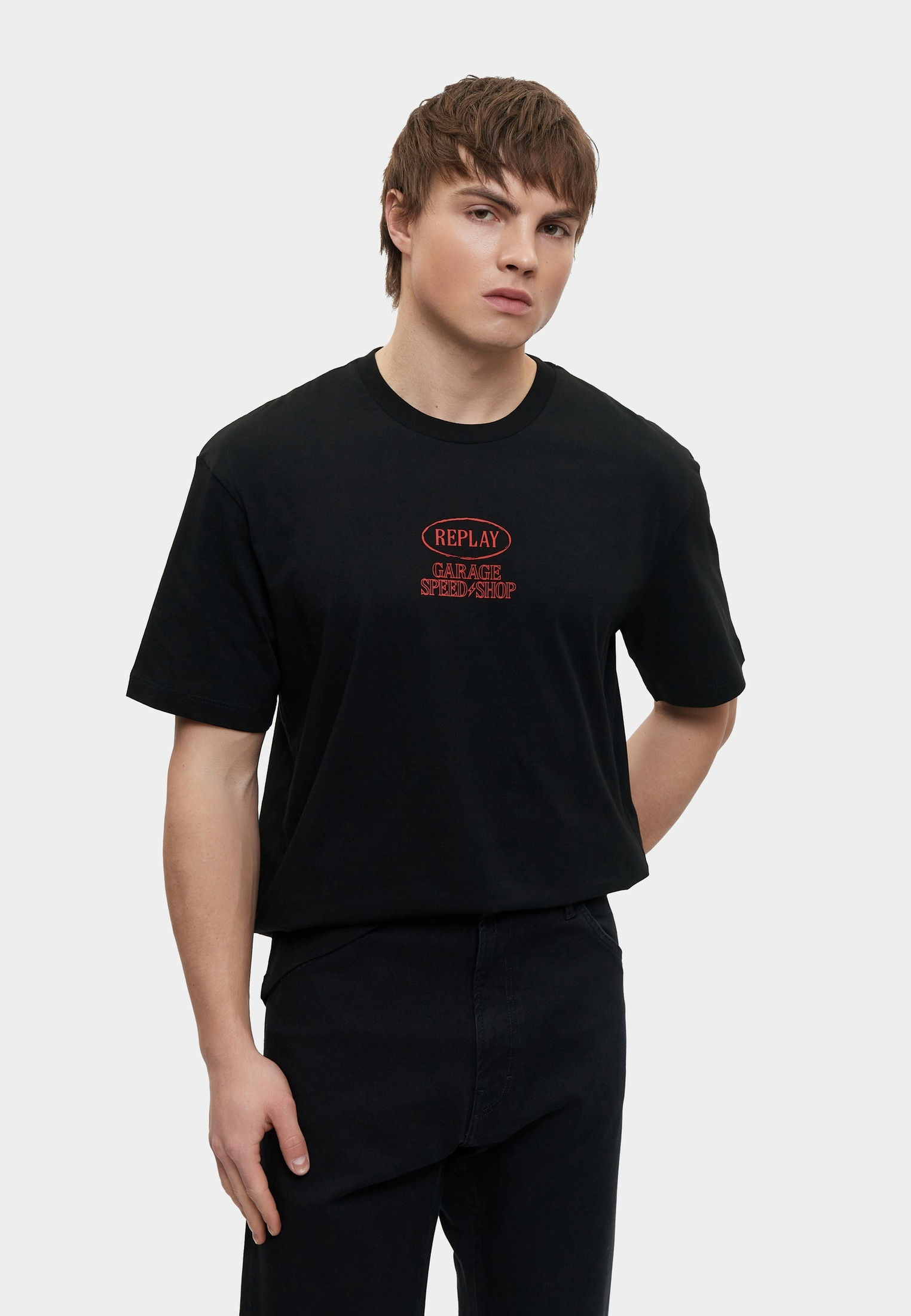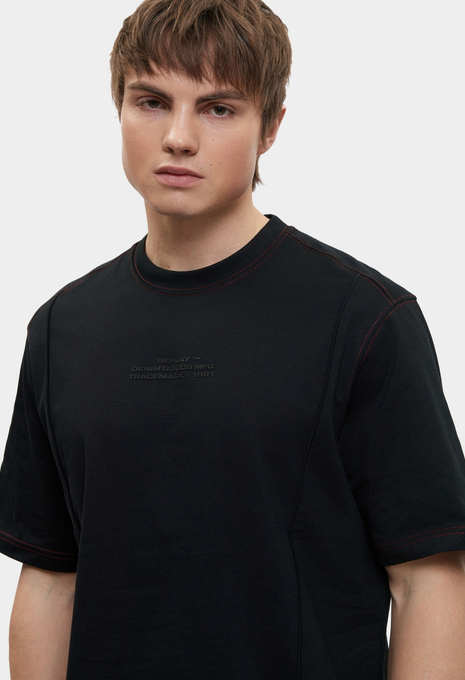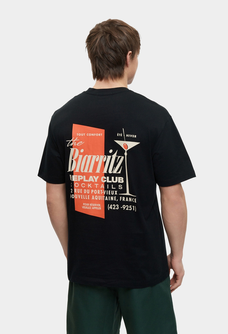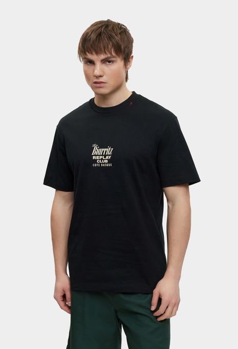 - Базовая модель умерено свободного кроя создана для вашего повседневного гардероба! Эта классическая черная футболка с круглым вырезом горловины выполнена из мягкого хлопкового трикотажа и украшена крупным фирменным принтом Replay. Изделие будет прекрасно сочетаться с широкими или зауженными джинсами, брюками, кроссовками и кедами из широкого ассортимента BNS Club.