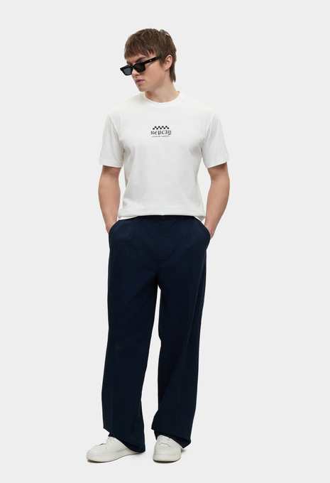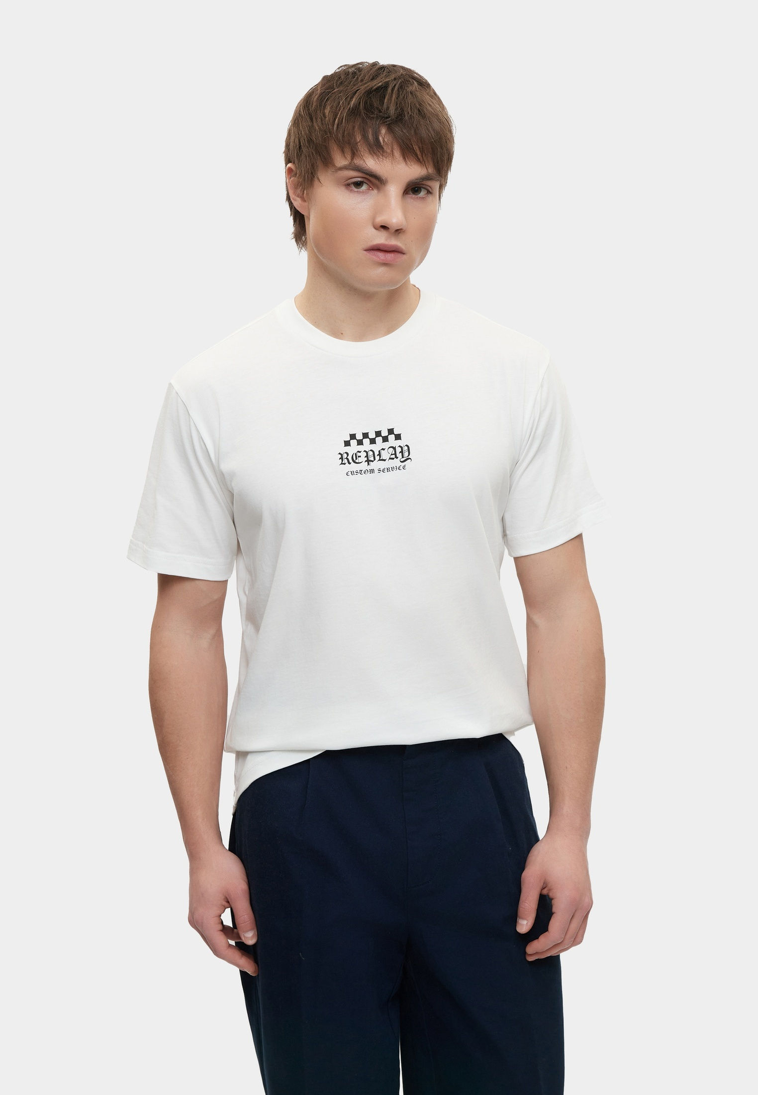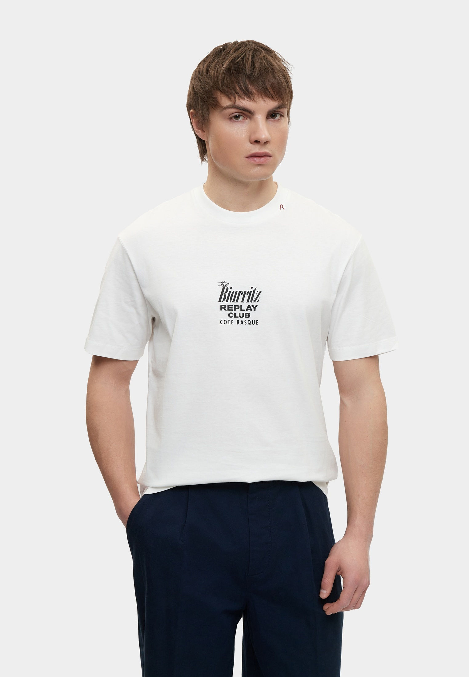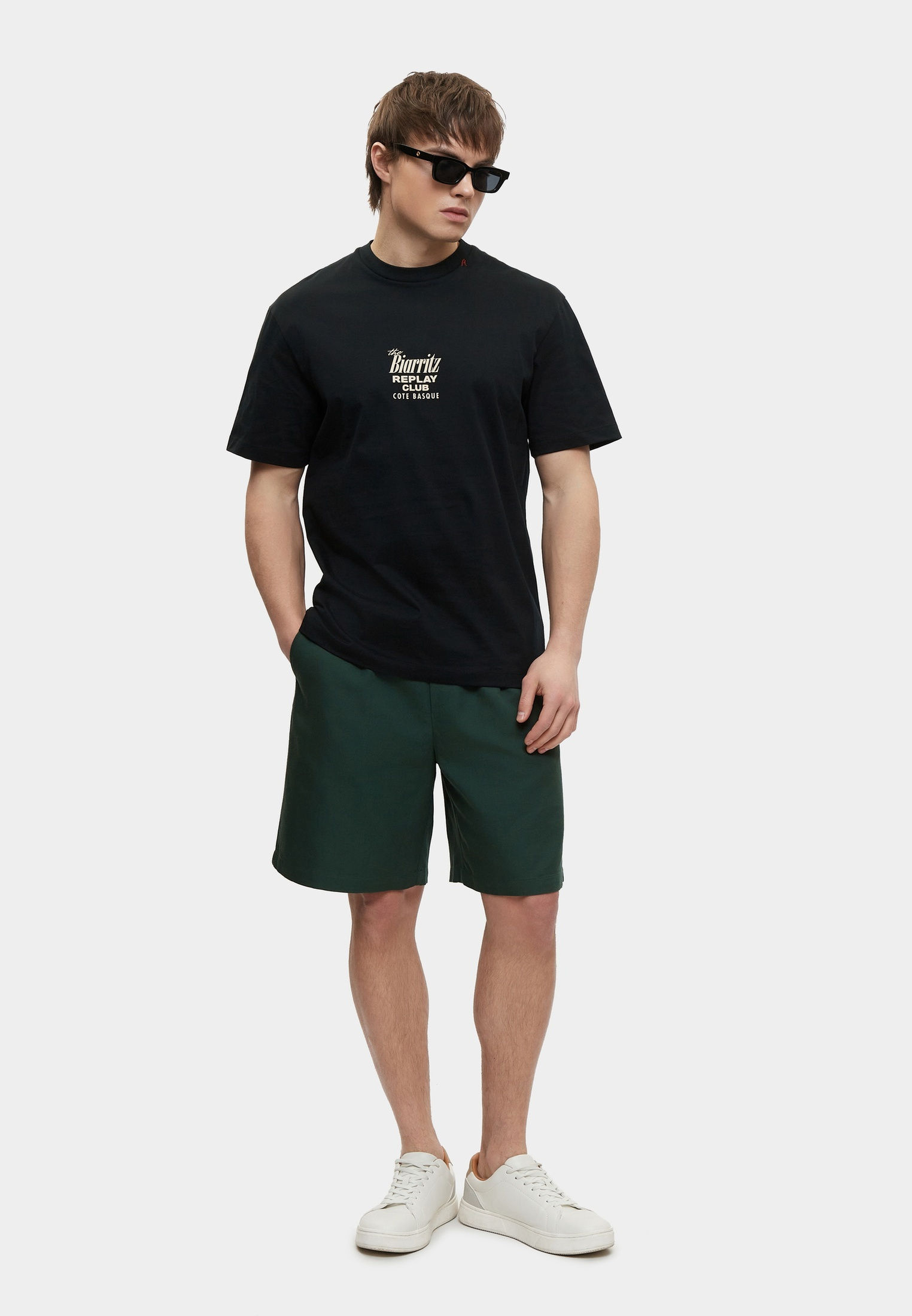 - Базовая модель умерено свободного кроя создана для вашего повседневного гардероба! Эта классическая черная футболка с круглым вырезом горловины выполнена из мягкого хлопкового трикотажа и украшена крупным фирменным принтом Replay. Изделие будет прекрасно сочетаться с широкими или зауженными джинсами, брюками, кроссовками и кедами из широкого ассортимента BNS Club.