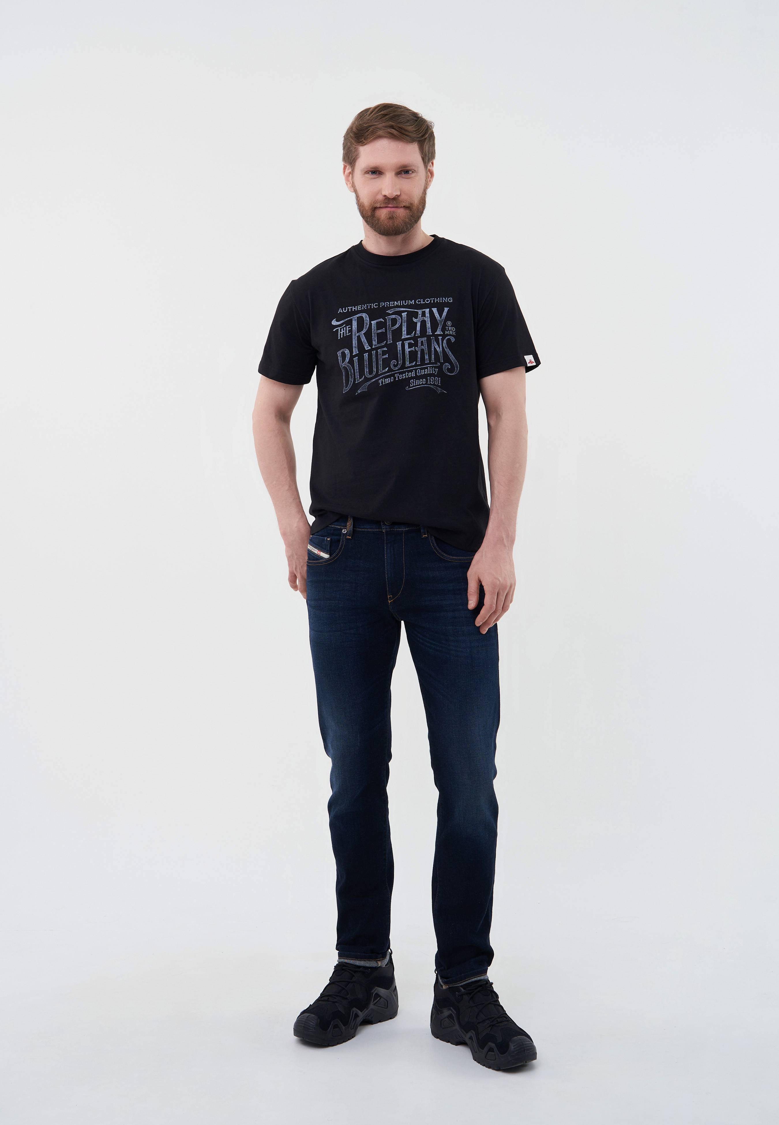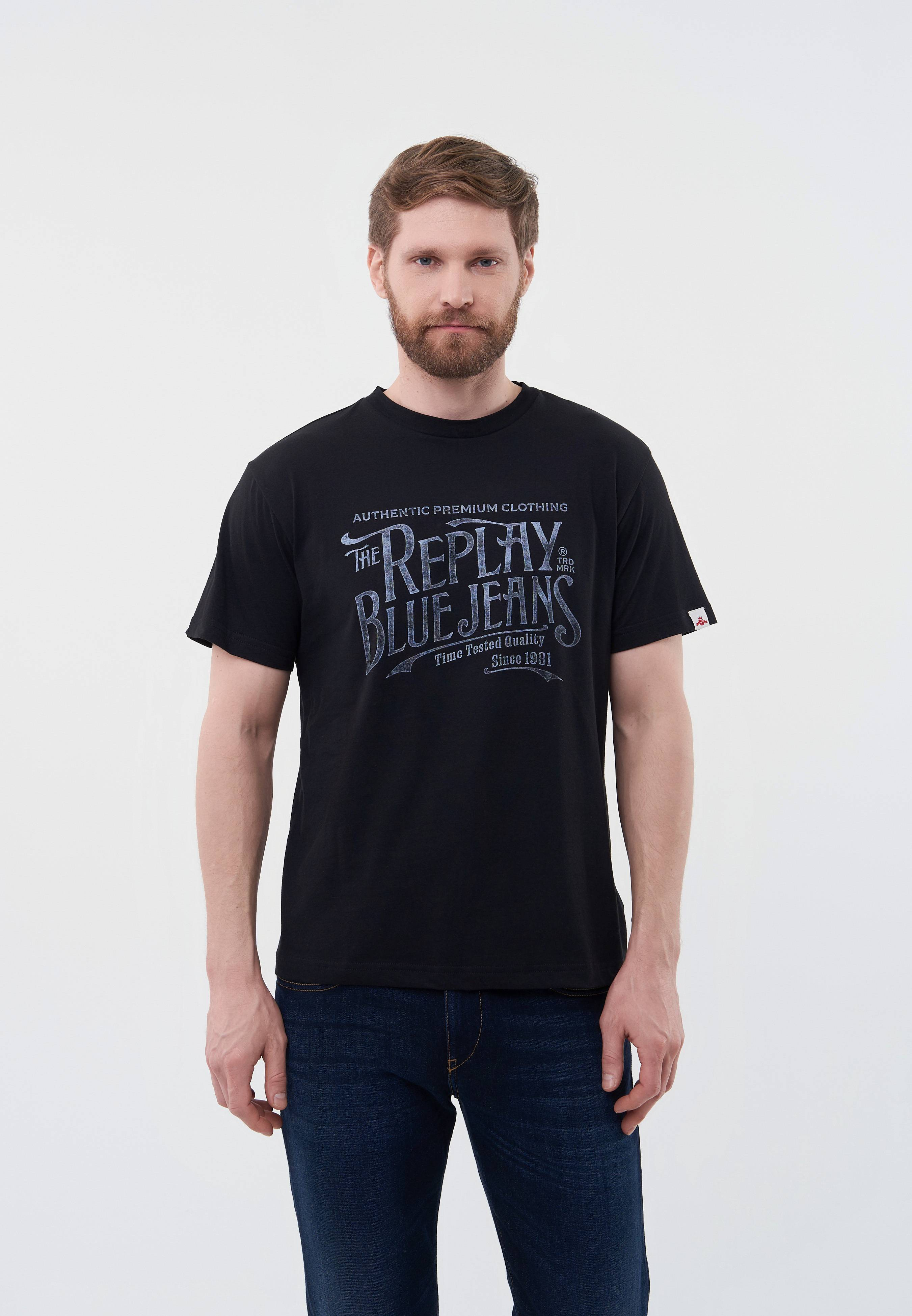 - Базовая модель умерено свободного кроя создана для вашего повседневного гардероба! Эта классическая черная футболка с круглым вырезом горловины выполнена из мягкого хлопкового трикотажа и украшена крупным фирменным принтом в стиле Replay. Изделие будет прекрасно сочетаться с широкими или зауженными джинсами, брюками, кроссовками и кедами из широкого ассортимента BNS Club.