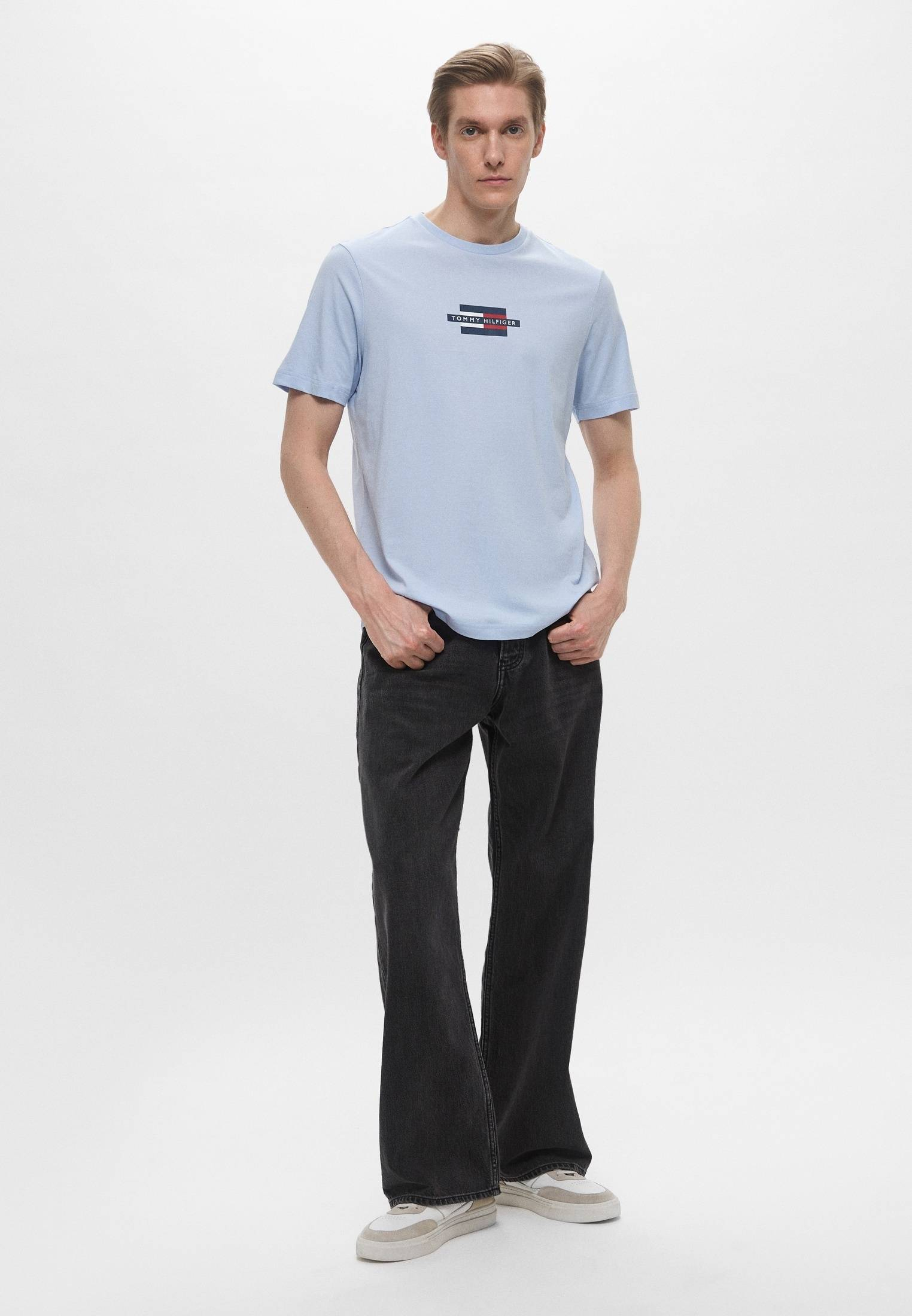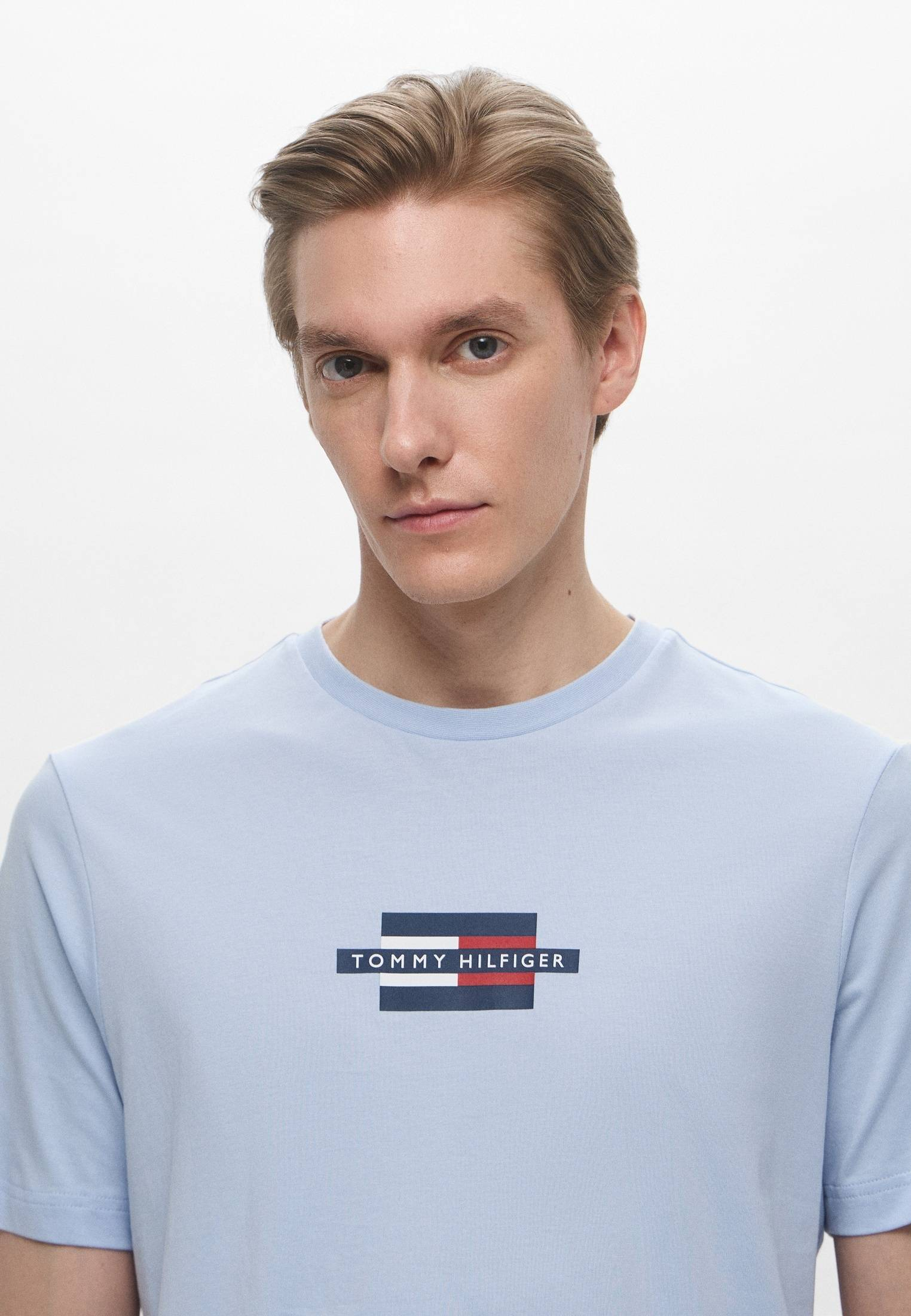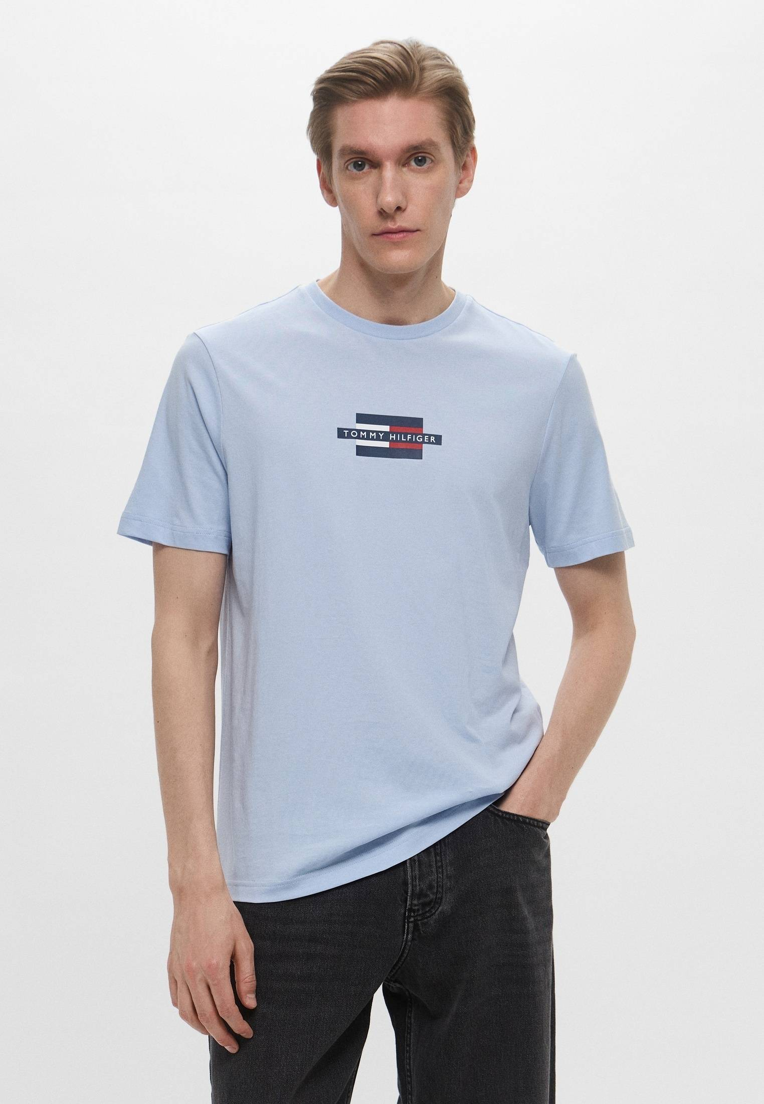 - Светло-голубая футболка с фирменным логотипом Tommy Hilfiger — то, что нужно для стильных непринужденных образов на каждый день! Модель прямого кроя с круглым вырезом горловины выполнена из хлопкового трикотажа. Материал мягок, приятен на ощупь, прост в уходе и эксплуатации. Изделие будет прекрасно сочетаться с широкими или зауженными джинсами, брюками, кроссовками и кедами из широкого ассортимента BNS Club.