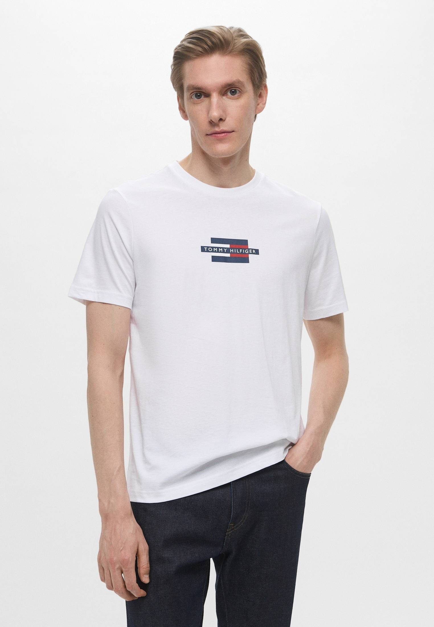 - Белая футболка с фирменным логотипом Tommy Hilfiger — то, что нужно для стильных непринужденных образов на каждый день! Модель прямого кроя с круглым вырезом горловины выполнена из хлопкового трикотажа. Материал мягок, приятен на ощупь, прост в уходе и эксплуатации. Изделие будет прекрасно сочетаться с широкими или зауженными джинсами, брюками, кроссовками и кедами из широкого ассортимента BNS Club.
