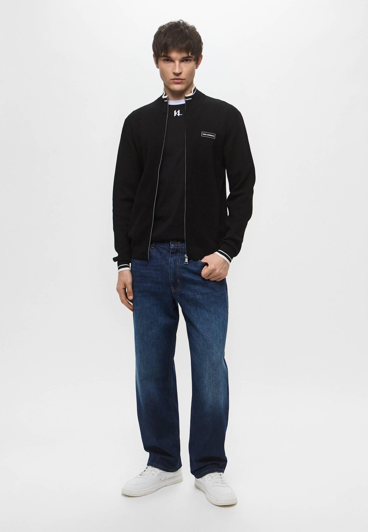 - Черный кардиган базового прямого кроя — идеальный выбор для тех, кто ценит комфорт. Приятный к телу, он создает уютное ощущение тепла и расслабленности, идеально подчеркивая ваш лаконичный образ. Изделие выполнено из мягкого и эластичного вязаного трикотажа, украшено фирменной нашивкой с логотипом Karl Lagerfeld. Кардиган застегивается на молнию. Сочетайте модель с джинсами или брюками любого кроя, надевайте поверх рубашек или футболок. Дополните образ любимыми аксессуарами — универсальный аутфит для любого случая готов!