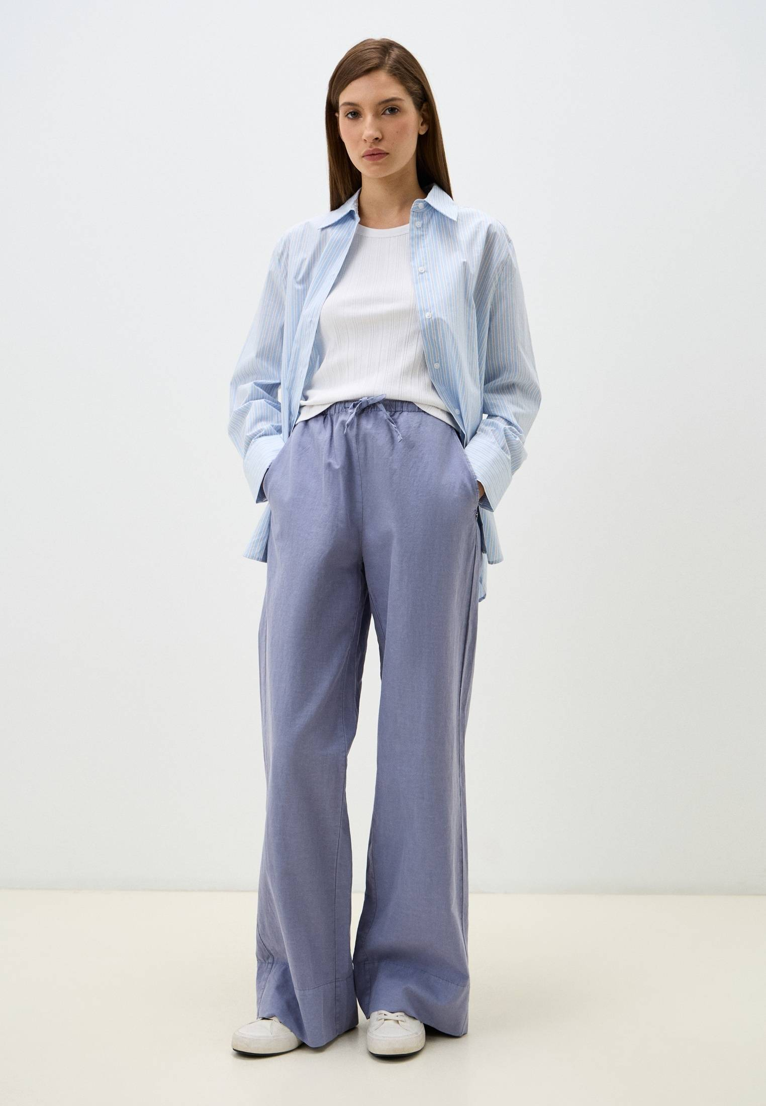 - Синие брюки свободного кроя от Replay помогут в создании непринужденного повседневного образа. Легкая ткань на основе хлопка и льна обеспечивает комфорт при ношении в течение всего дня. Брюки дополнены классическими прорезными карманами по бокам и эластичным поясом с кордами, которые помогают отрегулировать посадку. Сочетайте модель со свободными или облегающими футболками, лонгсливами и топами из ассортимента BNS Club.