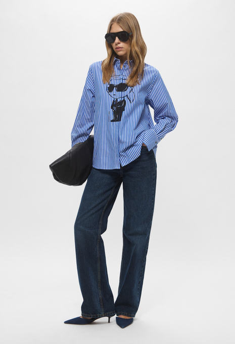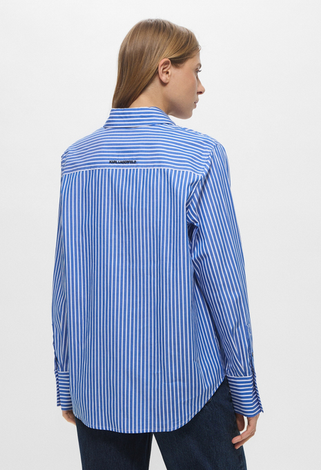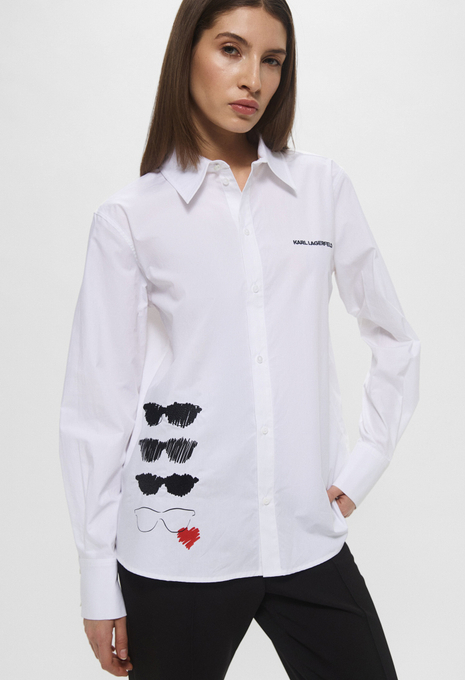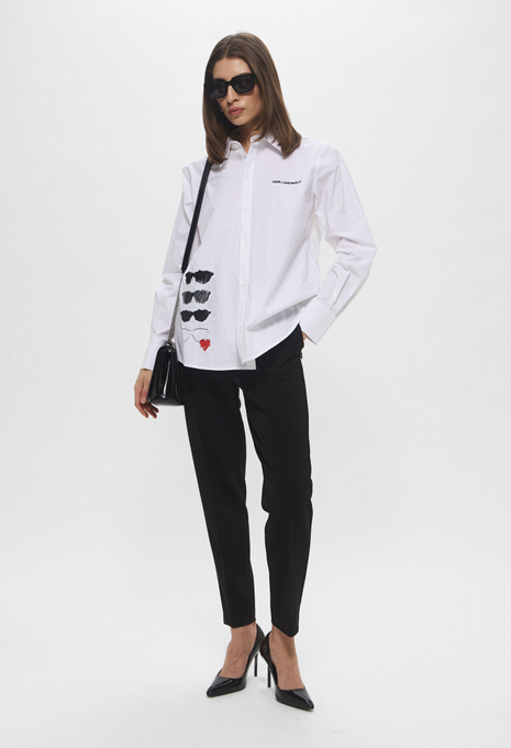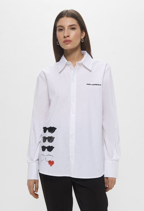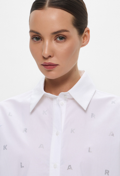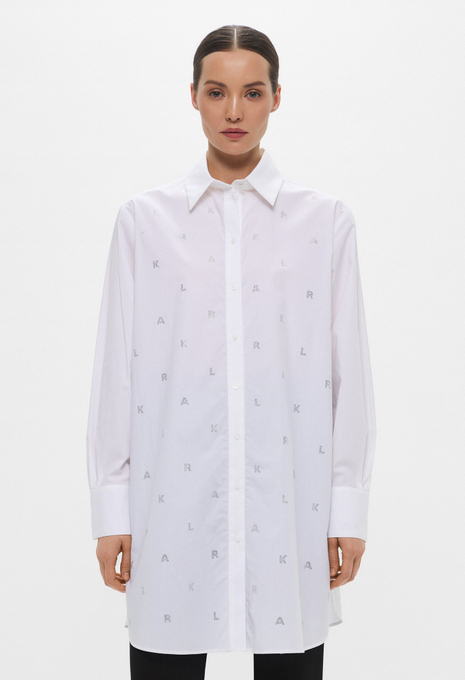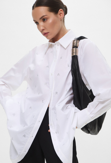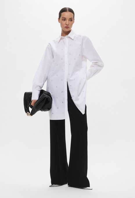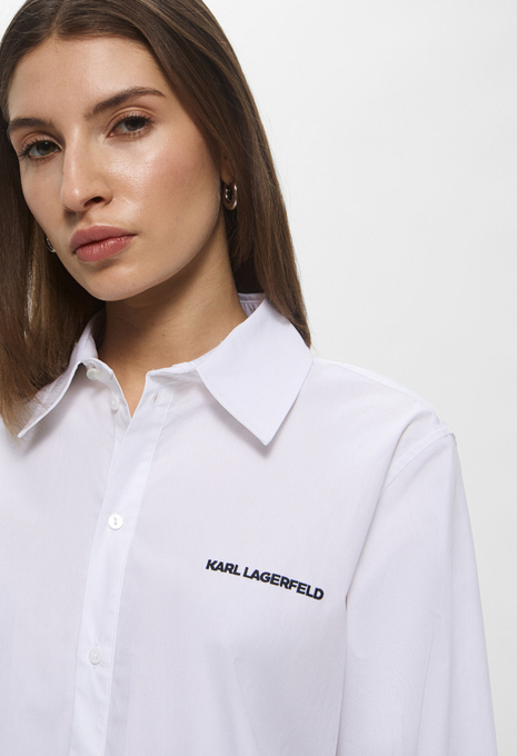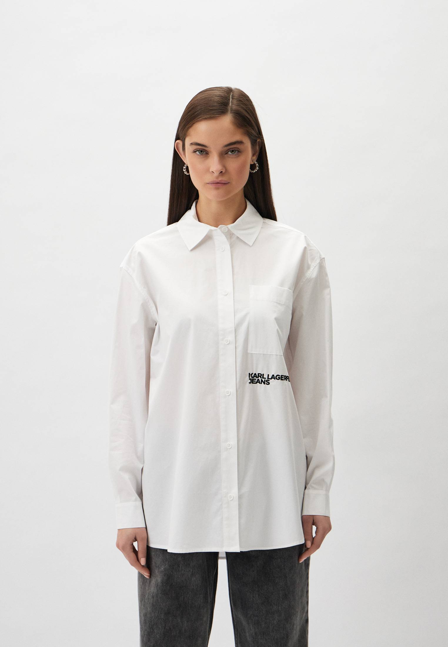 - Эта белая рубашка оверсайз, сшитая из органического хлопкового поплина, поможет в создании непринужденных образов. Модель прекрасно впишется в офисные, повседневные или официальные луки. Приятный на ощупь хлопковый материал мягко касается кожи и обеспечивает максимальный комфорт на протяжении всего дня. Рубашка застегивается на пуговицы, имеет нагрудный карман и небольшой контрастный логотип Karl Lagerfeld Jeans.