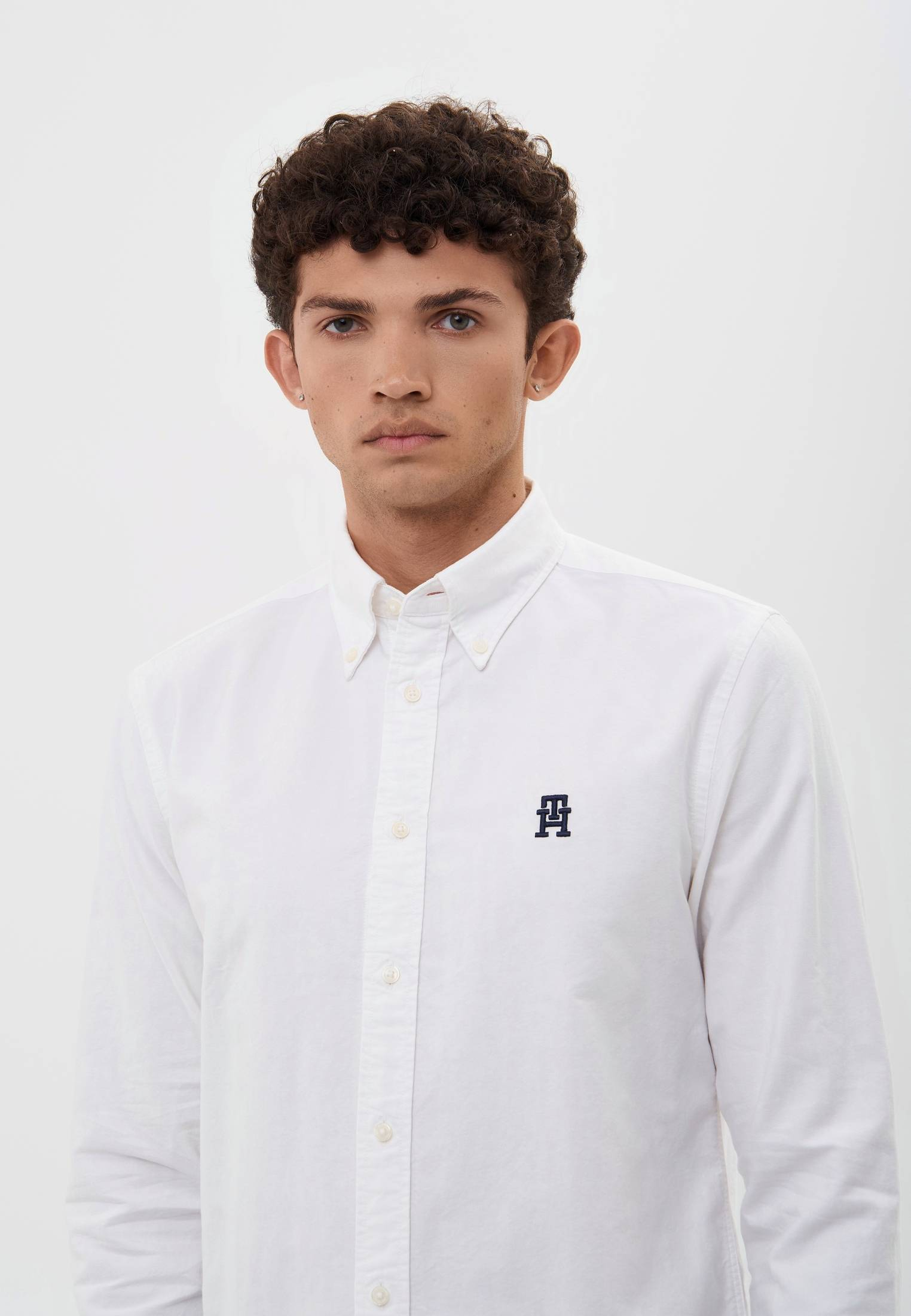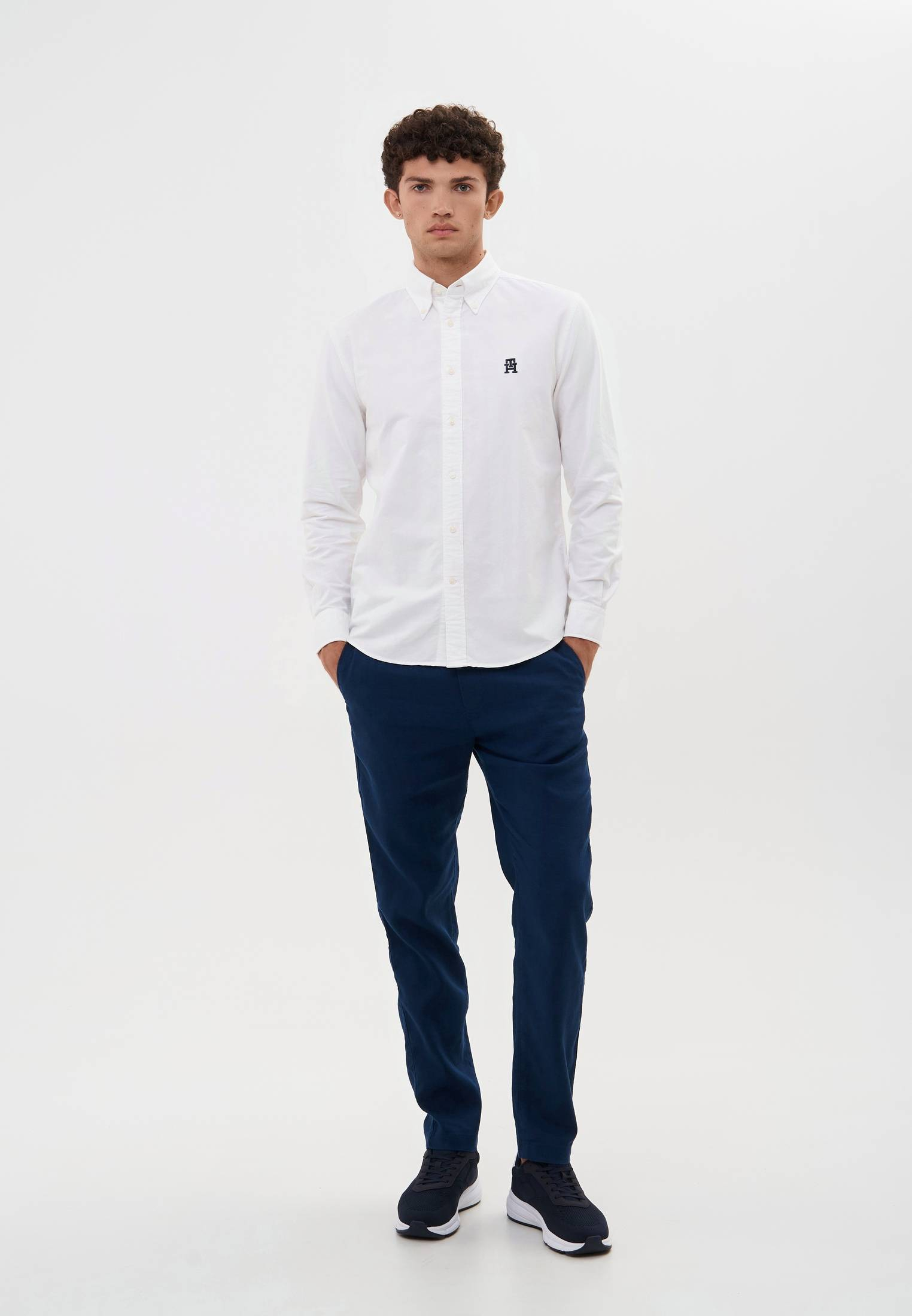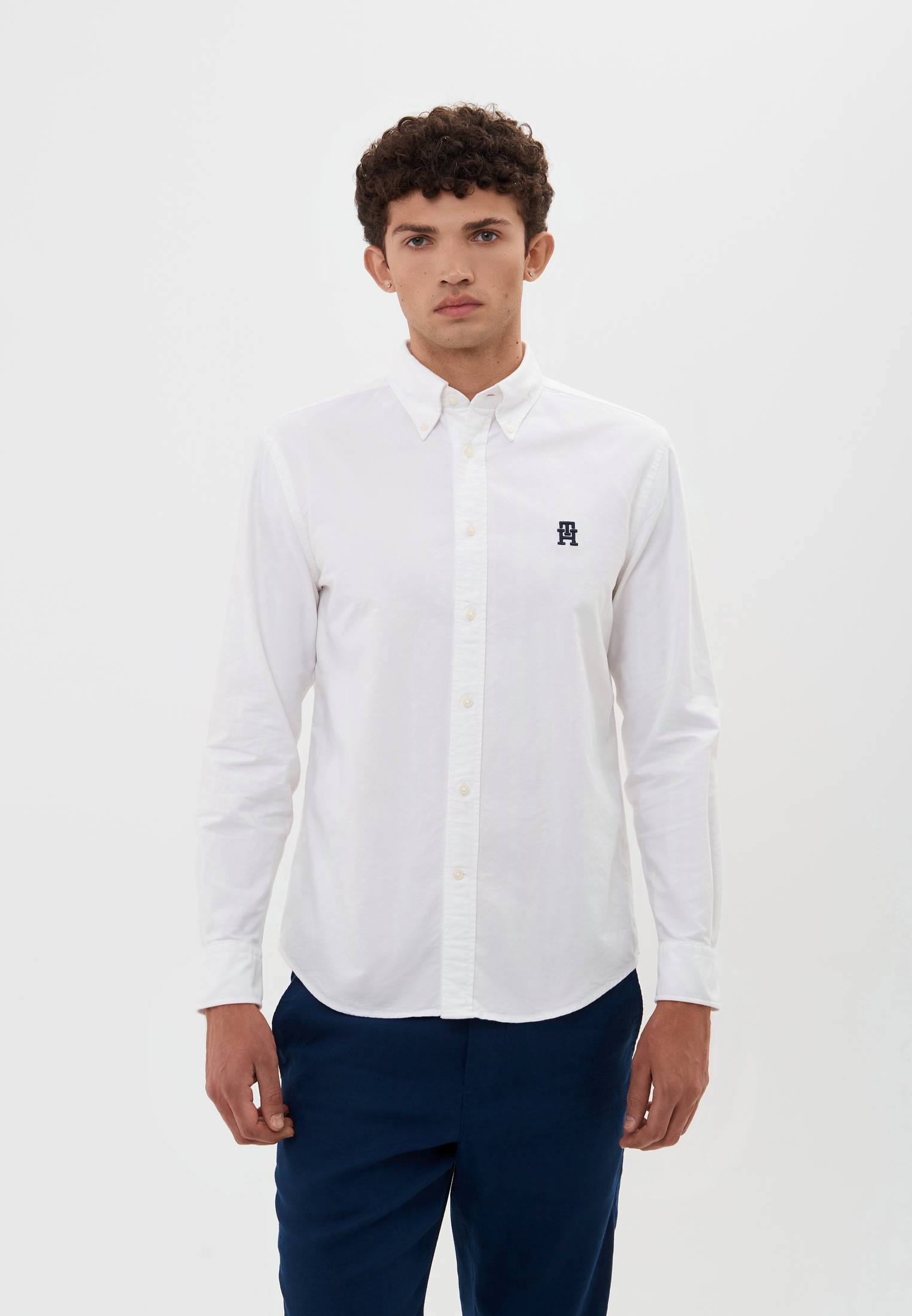 - Классическая белая рубашка от Tommy Hilfiger — прекрасный вариант для офисных или праздничных образов под пиджак или джемпер. Модель прямого кроя с длинным рукавом и отложным воротником выполнена из легкого и дышащего хлопкового текстиля. В таком материале будет комфортно на протяжении всего дня. Рубашка застегивается на пуговицы, оформлена фирменной вышивкой с логотипом бренда.