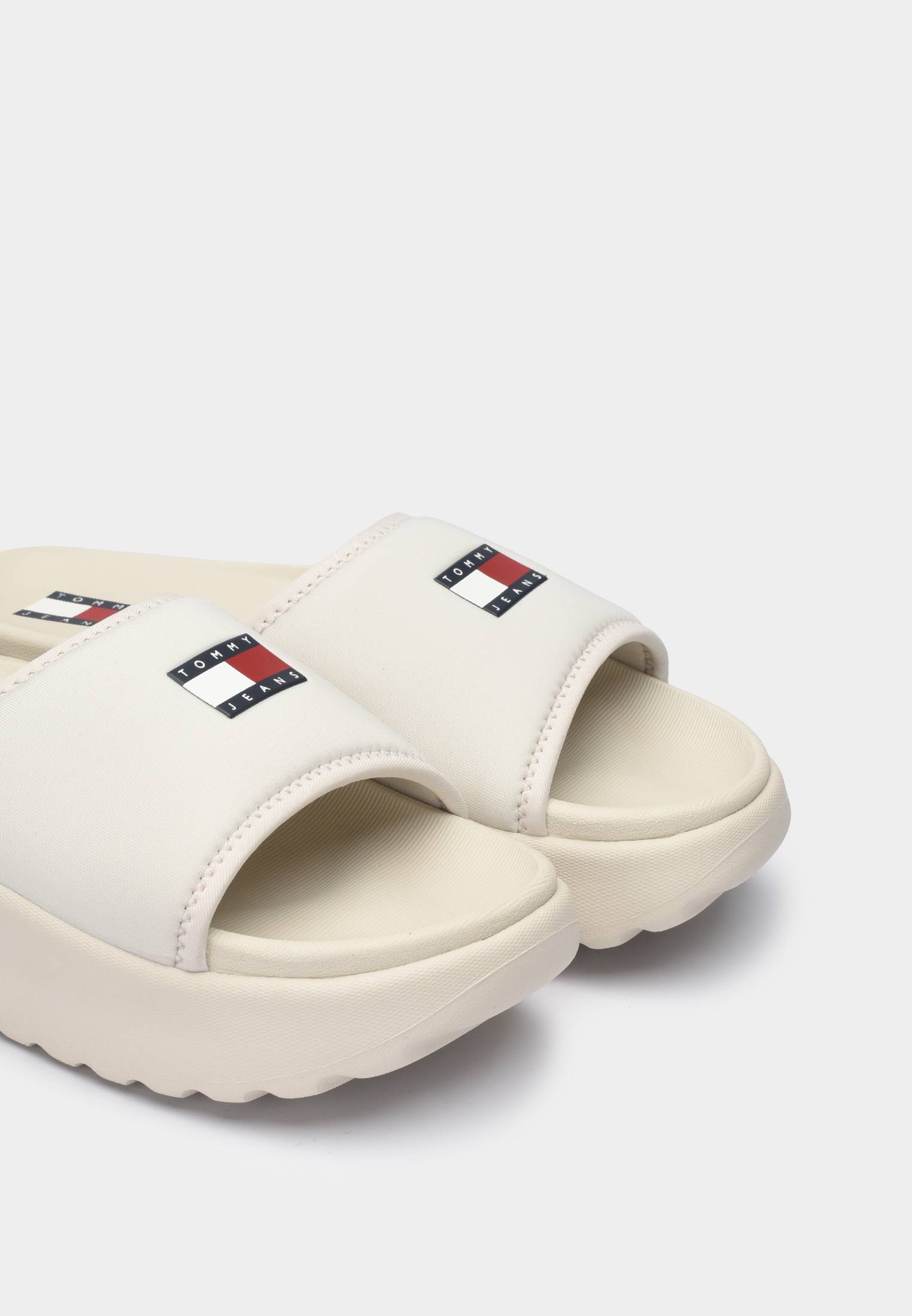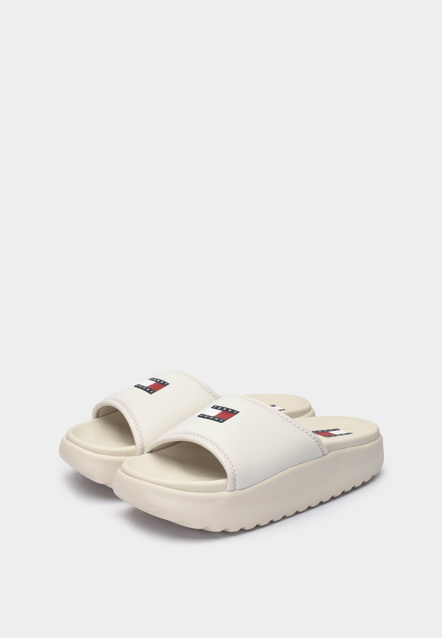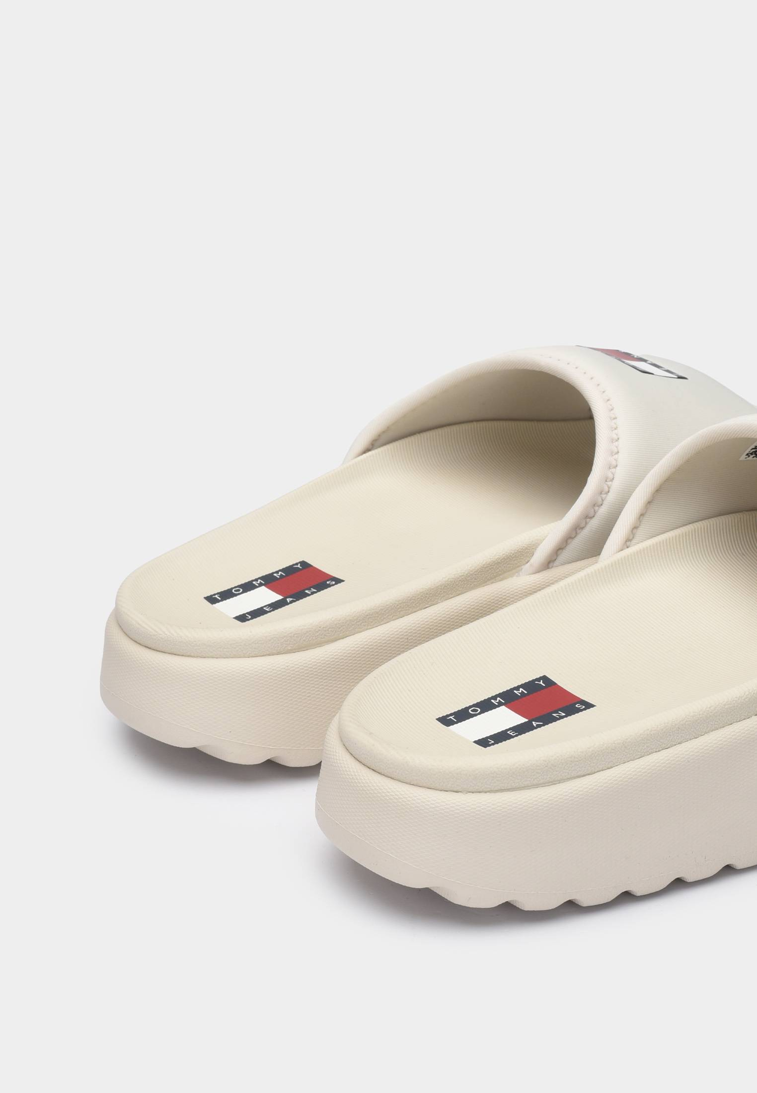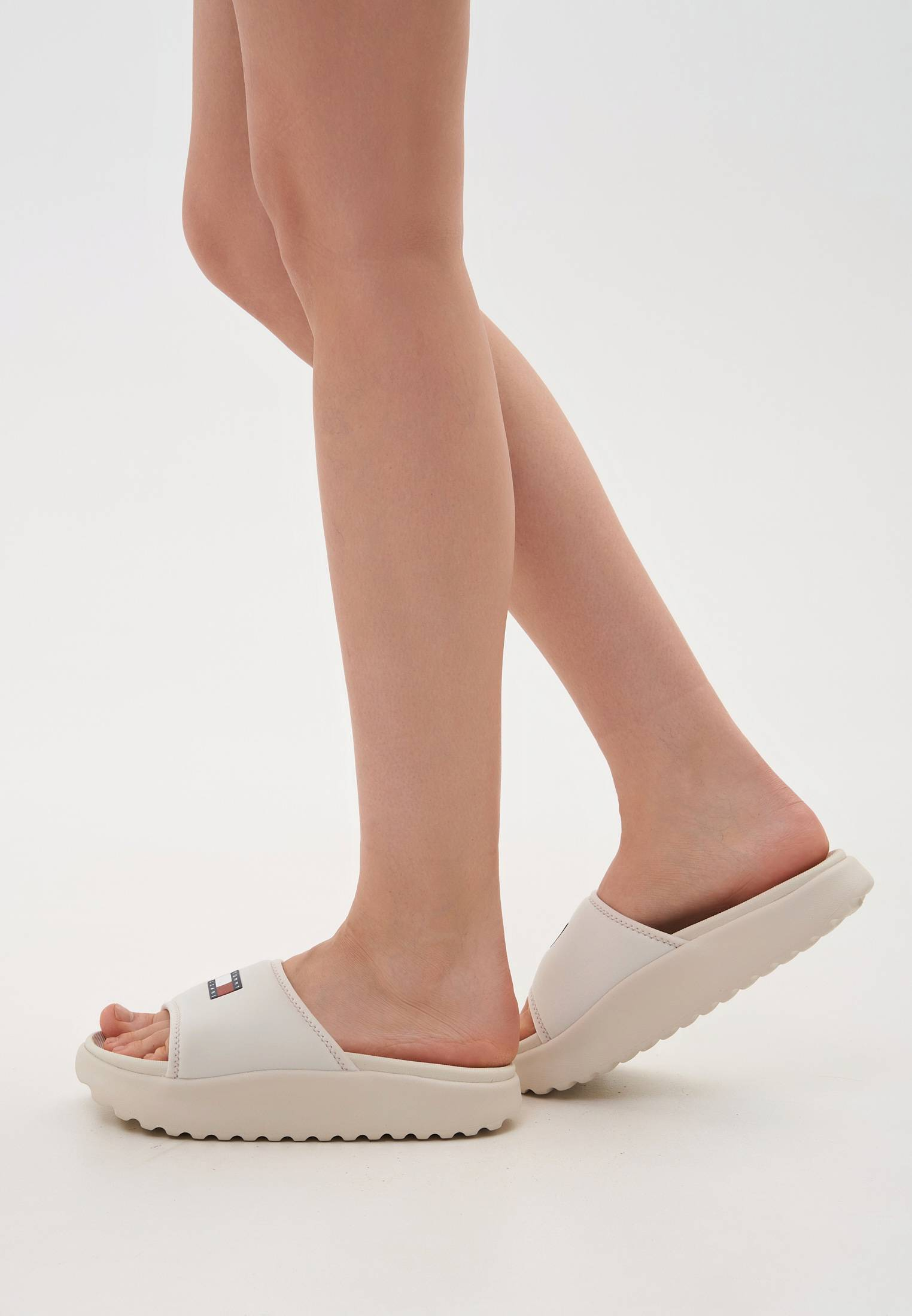 - Один из самых универсальных вариантов на лето — молочные шлепанцы Tommy Hilfiger на рельефной подошве. Они прекрасно впишутся в ваши пляжные или даже повседневные городские образы. Шлепанцы выполнены из гладкой матовой резины. Мягкий и пластичный материал легко адаптируется под форму стопы, обеспечивая комфортную эксплуатацию. Верх модели и подошва украшены логотипами бренда.