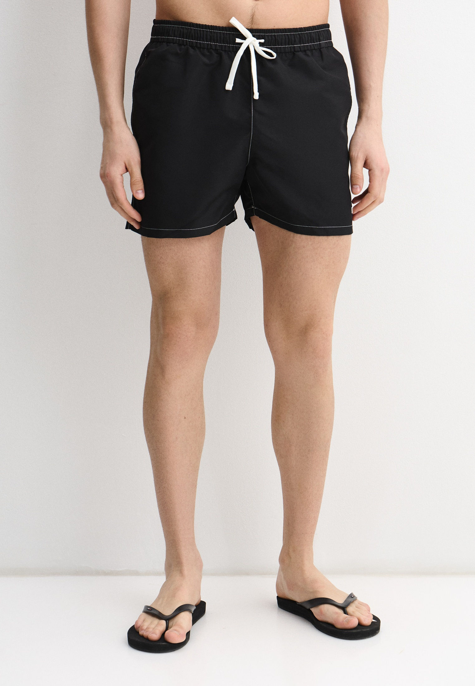 - Черные плавательные шорты Karl Lagerfeld — прекрасный вариант для пляжного отдыха! Выполненные из легкого матового материала, они быстро сохнут и комфортно ощущаются на теле. Шорты имеют эластичный пояс с брендированными кордами, которые помогают дополнительно отрегулировать посадку. В оформлении модели использован фирменный принт Karl Lagerfeld.
