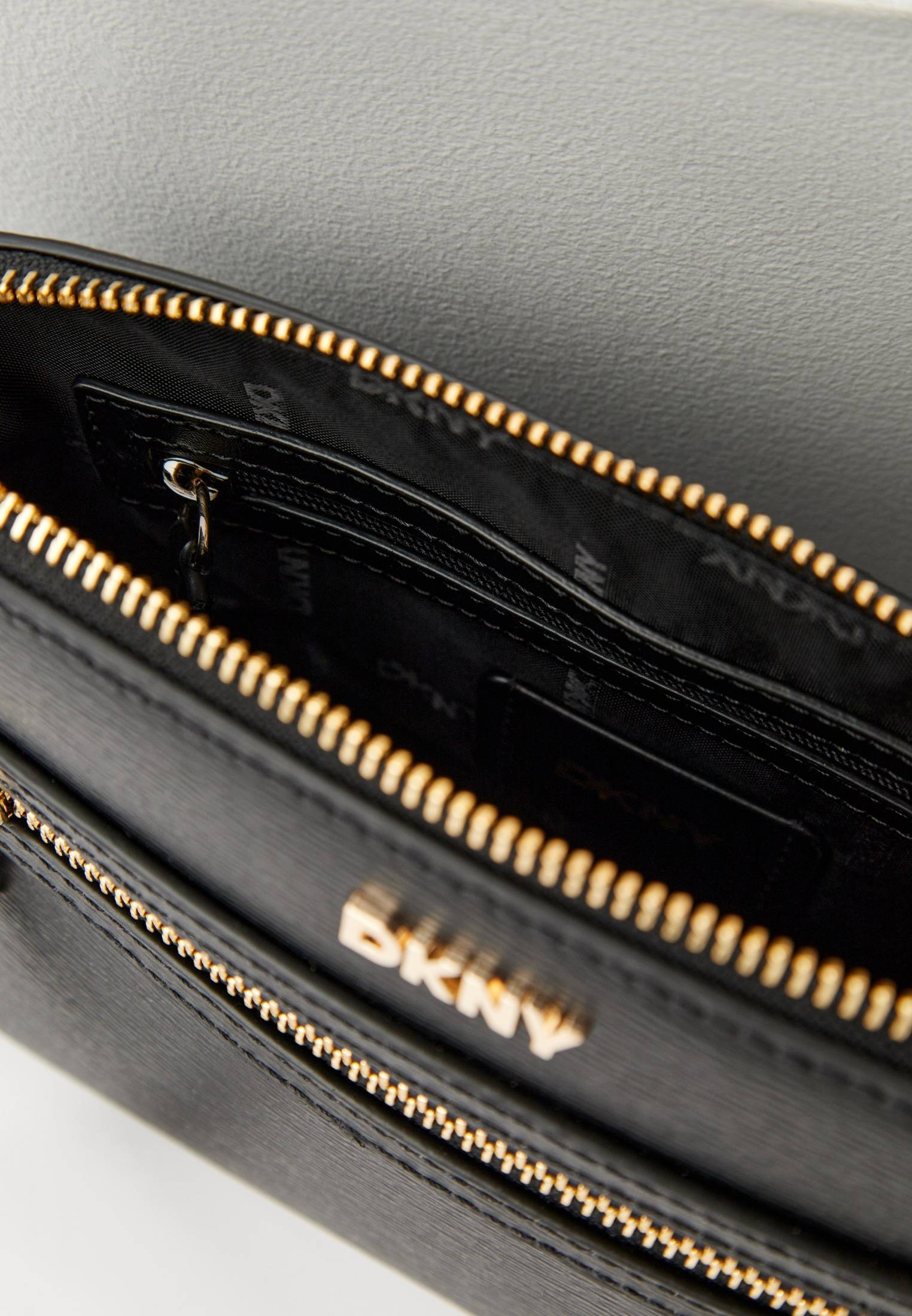 - Женская сумка через плечо от DKNY в классическом черном цвете — идеальное сочетание функциональности и элегантности. Аксессуар с жестким корпусом выполнен из фактурной натуральной кожи. Сумка застегивается на молнию, имеет одно отделение с несколькими карманами, карман на магнитной кнопке и небольшой карман на молнии. Регулируемый ремень позволяет комфортно носить модель на плече или как кросс-боди. В оформлении изделия использован фирменный логотип DKNY.