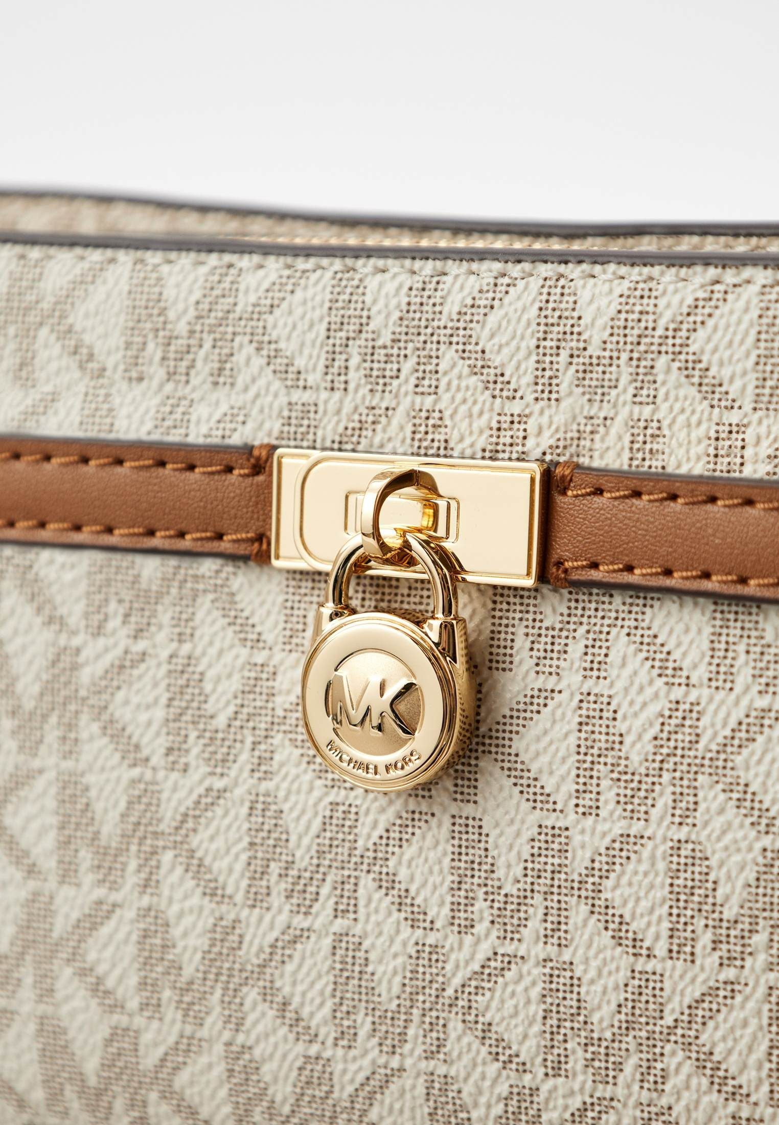 - Идеально для ваших женственных вечерних образов — ванильная сумка HAMILTON MODERNE от Michael Kors. Изделие выполнено из фактурной искусственной кожи с монограммой «MK» по всей поверхности. Сумка застегивается на молнию, имеет одно внутреннее отделение с карманом, внешний карман на магнитной кнопке и съемный ремешок-цепочку, позволяющий носить модель не только на плече, но и как стильный клатч. Аксессуар оформлен золотистым замочком с фирменным логотипом бренда.