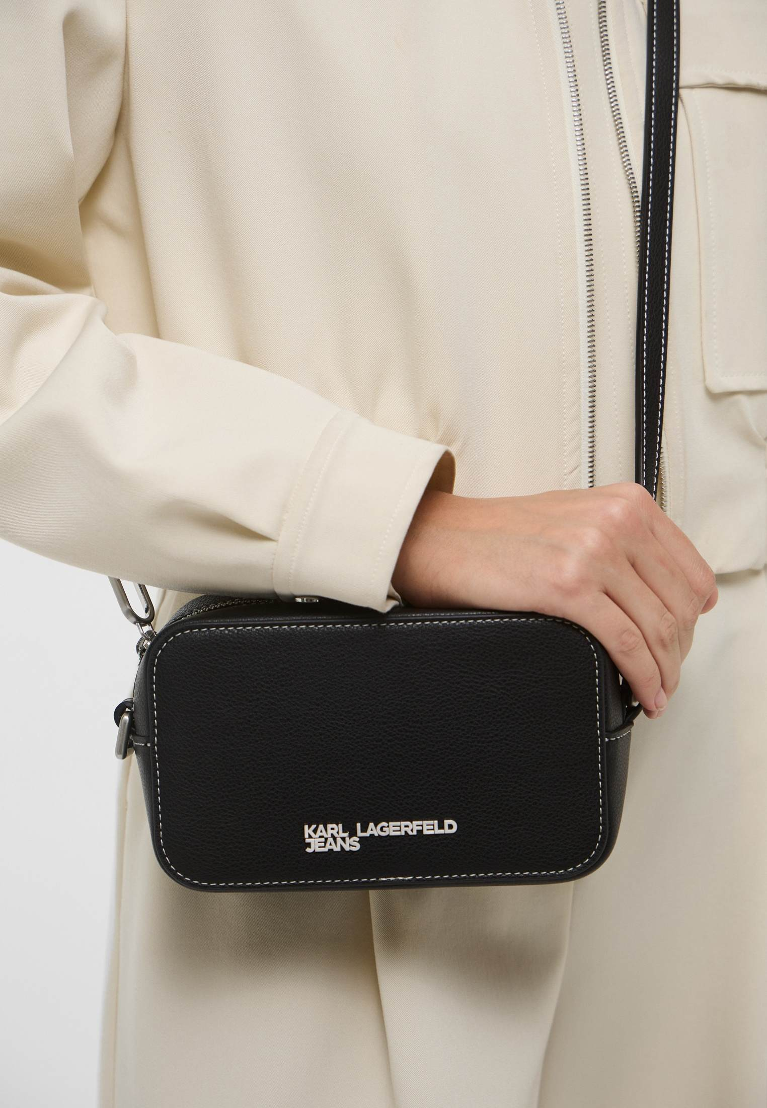 - Небольшая черная сумка прямоугольной формы от Karl Lagerfeld Jeans идеальна для безопасного хранения ваших мелочей, которые всегда должны быть под рукой. Модель с контрастной строчкой выполнена из искусственной кожи с зернистой фактурой. Сумка имеет одно отделение, регулируемый ремешок, застегивается на молнию, оформлена фирменным логотипом бренда.