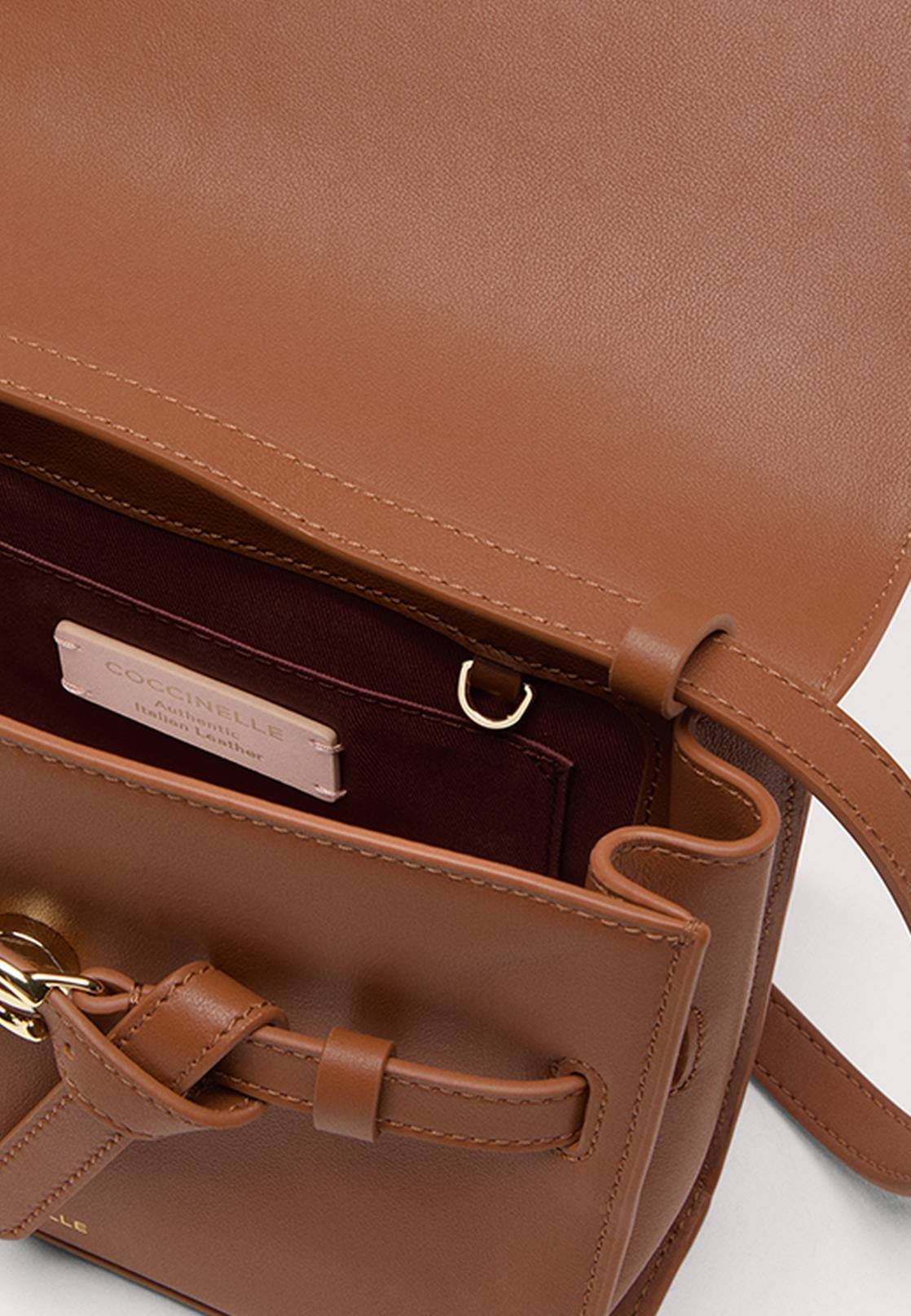 - Coccinelle Sabine — это универсальная линия, сочетающая в себе структуру, мягкость и элегантную отделку. Небольшая сумка в темно-бежевом цвете изготовлена из гладкой натуральной кожи, обработанной специальными маслами, которые делают ее более приятной на ощупь. Материал устойчив к внешним воздействиям благодаря использованию смол. Сумка имеет одно отделение с небольшим карманом внутри и удобный регулируемый ремешок. Аксессуар застегивается на магнит. Модель оформлена фирменным металлическим логотипом бренда.