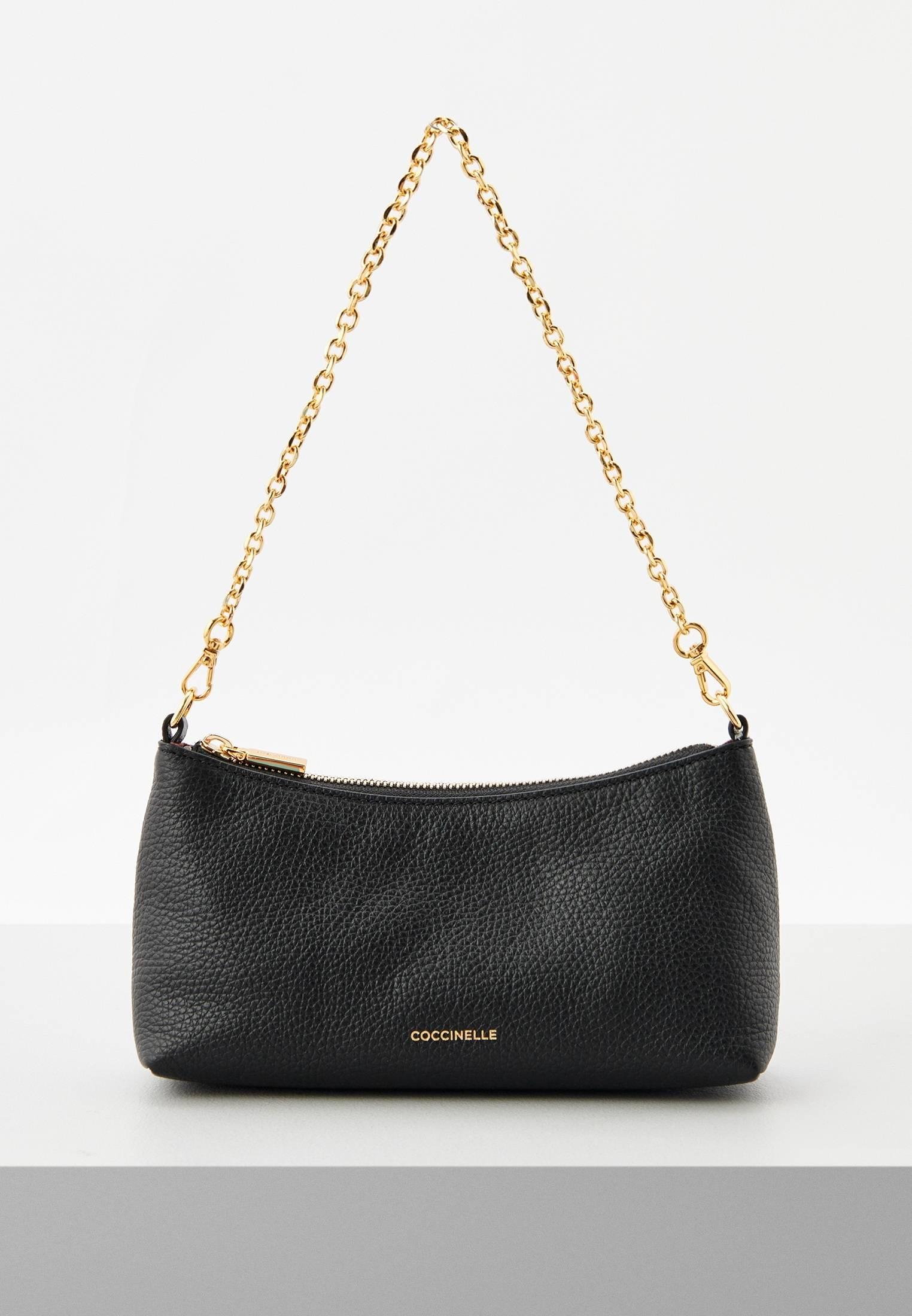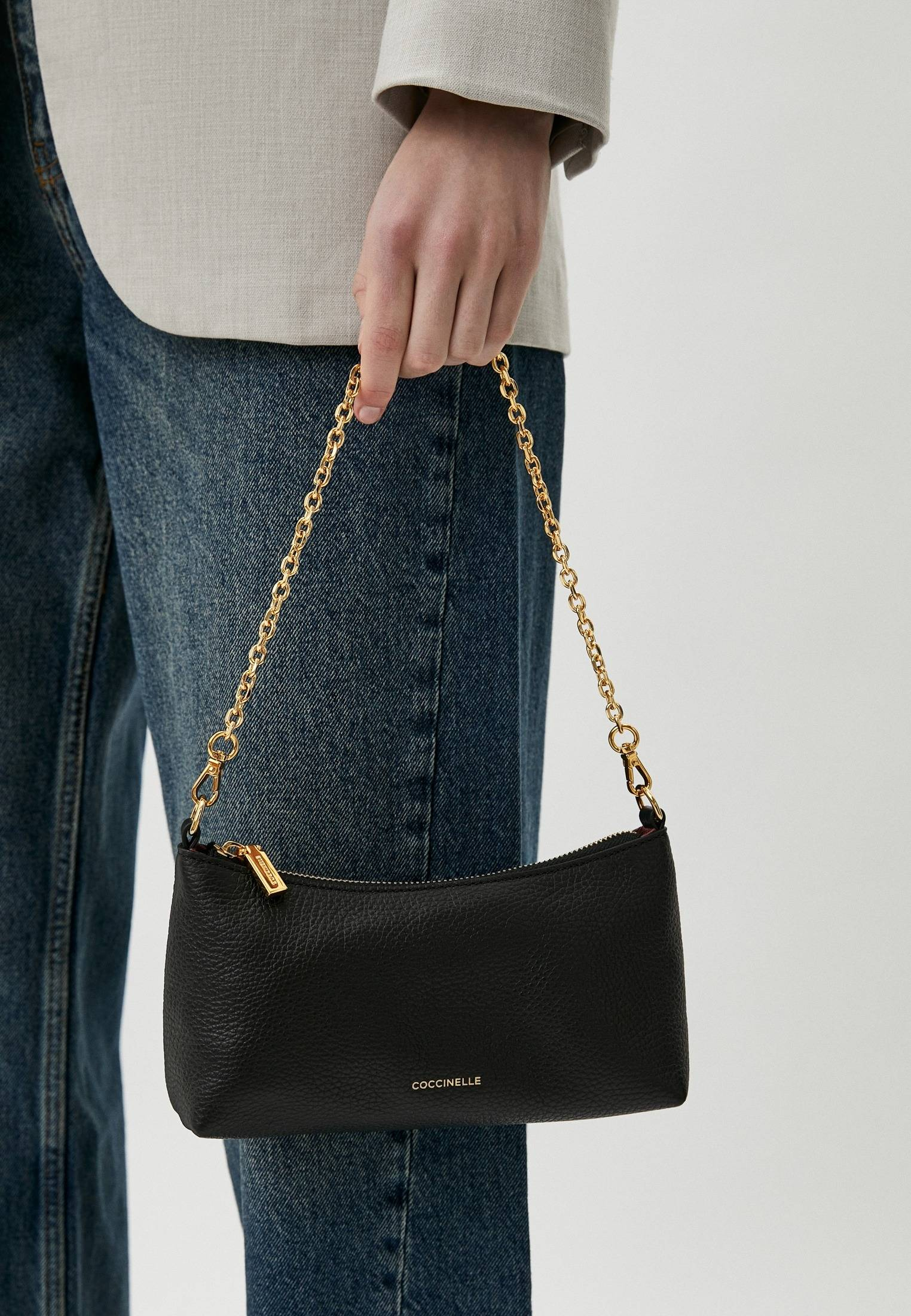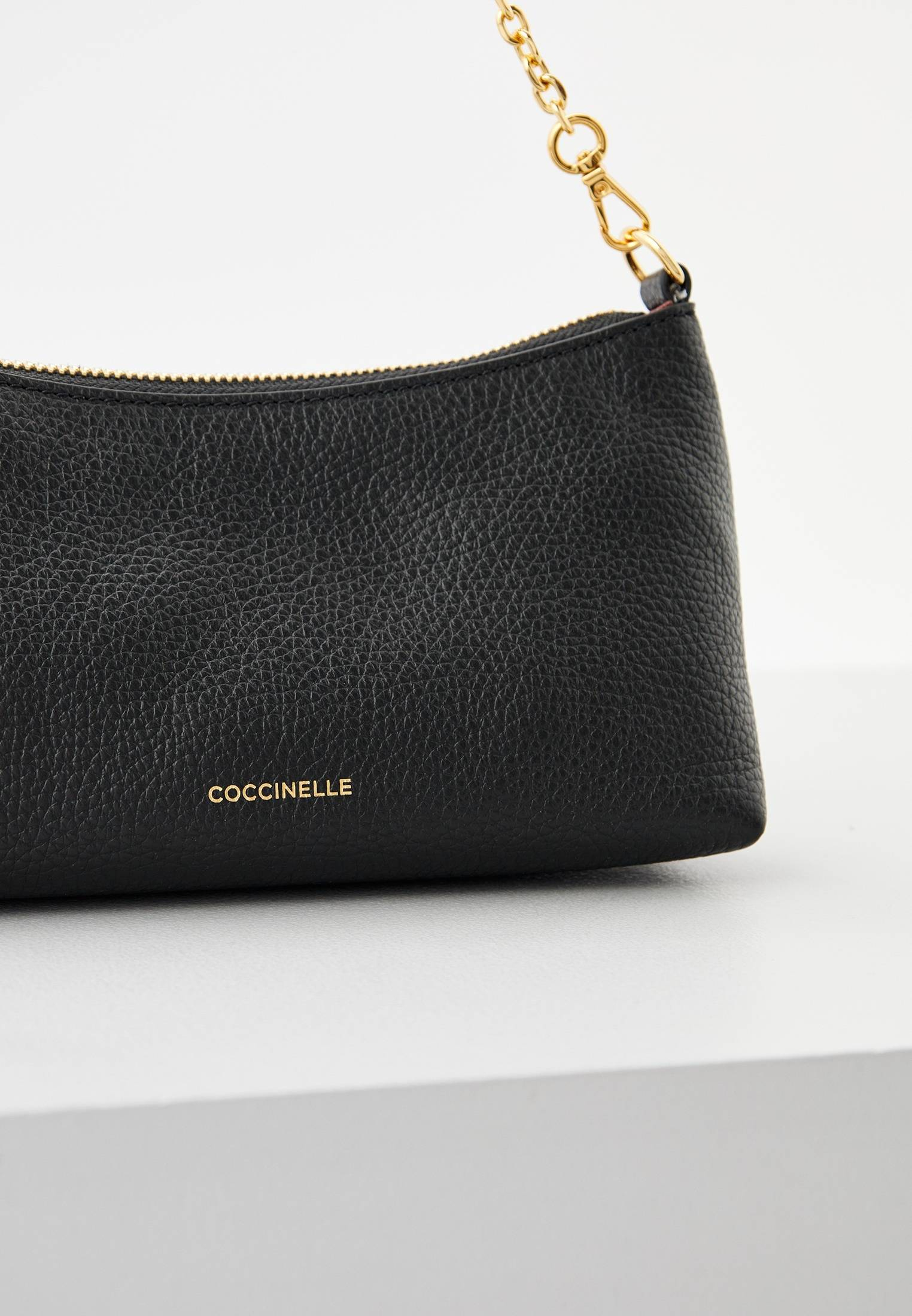- Современная и универсальная мини-сумка из линейки Coccinelle Aura создана для того, чтобы сопровождать вас каждый день! Модель в классическом черном цвете имеет одно отделение на молнии со слотами для карт и наличных, съемный регулируемый ремень и изящную ручку-цепочку, которая делает сумку идеальным вариантом для вечерних или праздничных образов. Изделие выполнено из натуральной зернистой кожи, прошедшей специальную обработку для сохранения мягкости. Это очень прочный материал, который не требует особого ухода и прекрасно подходит для ежедневного использования. Минималистичная сумочка прекрасно дополнит ваши женственные образы.