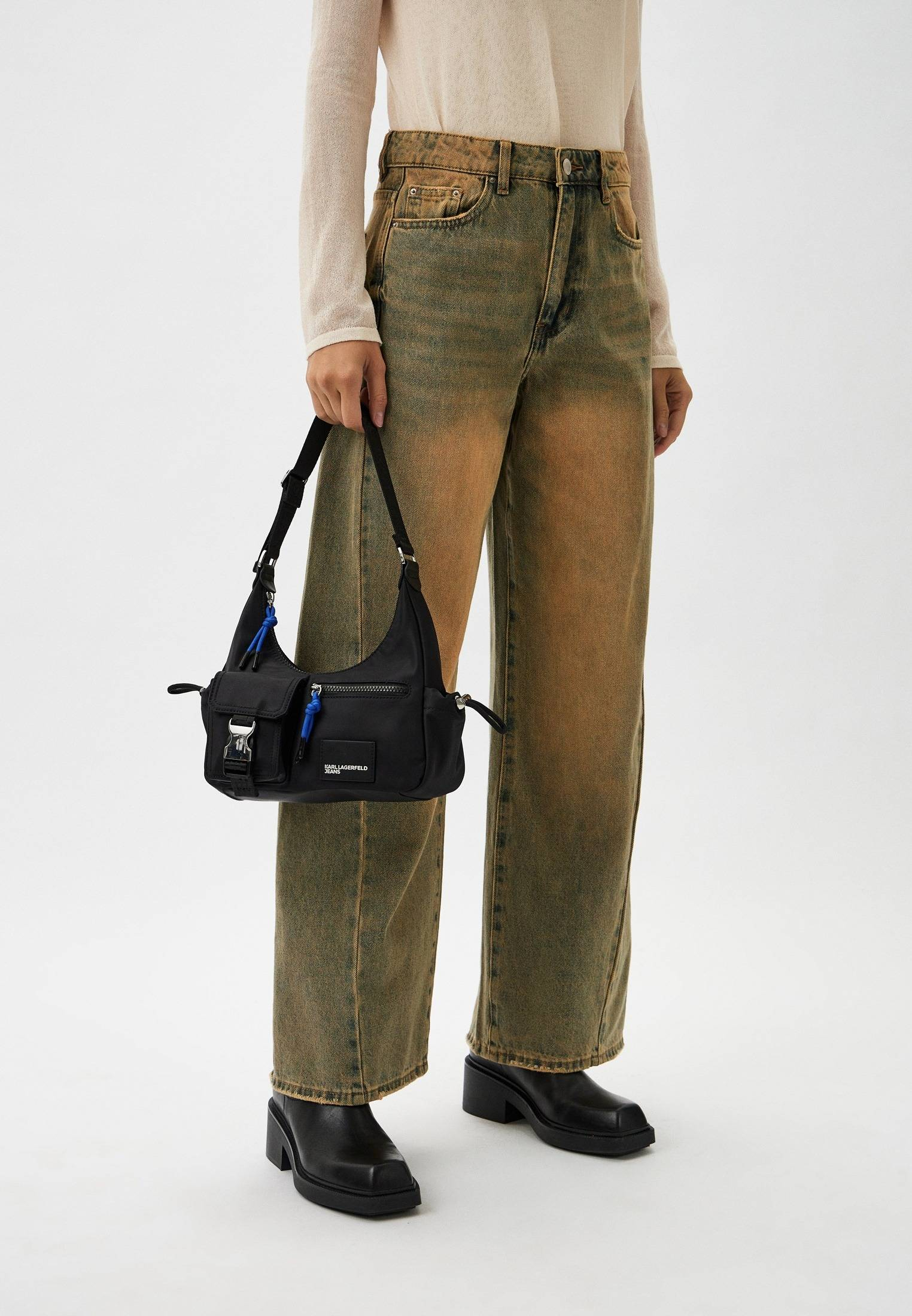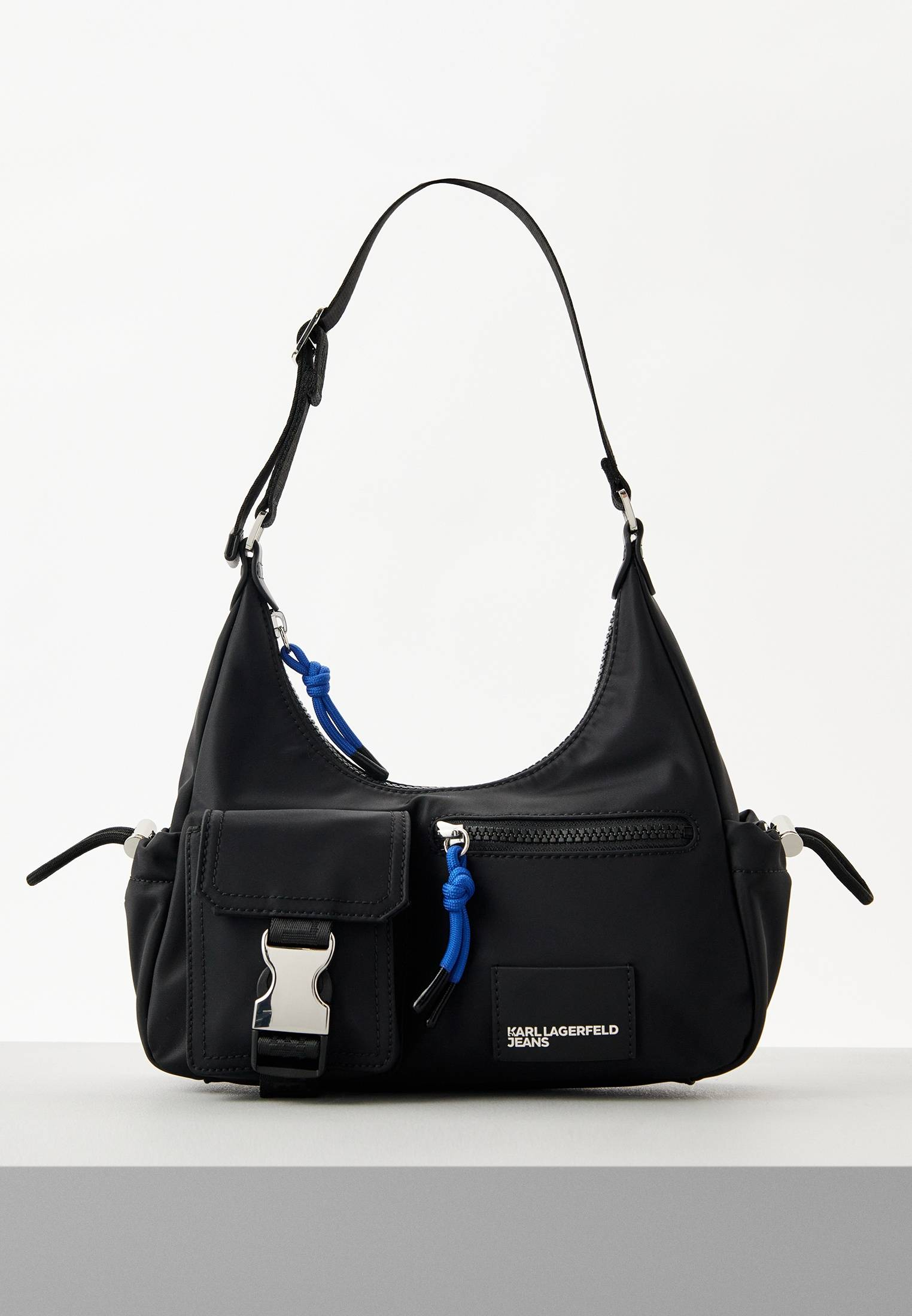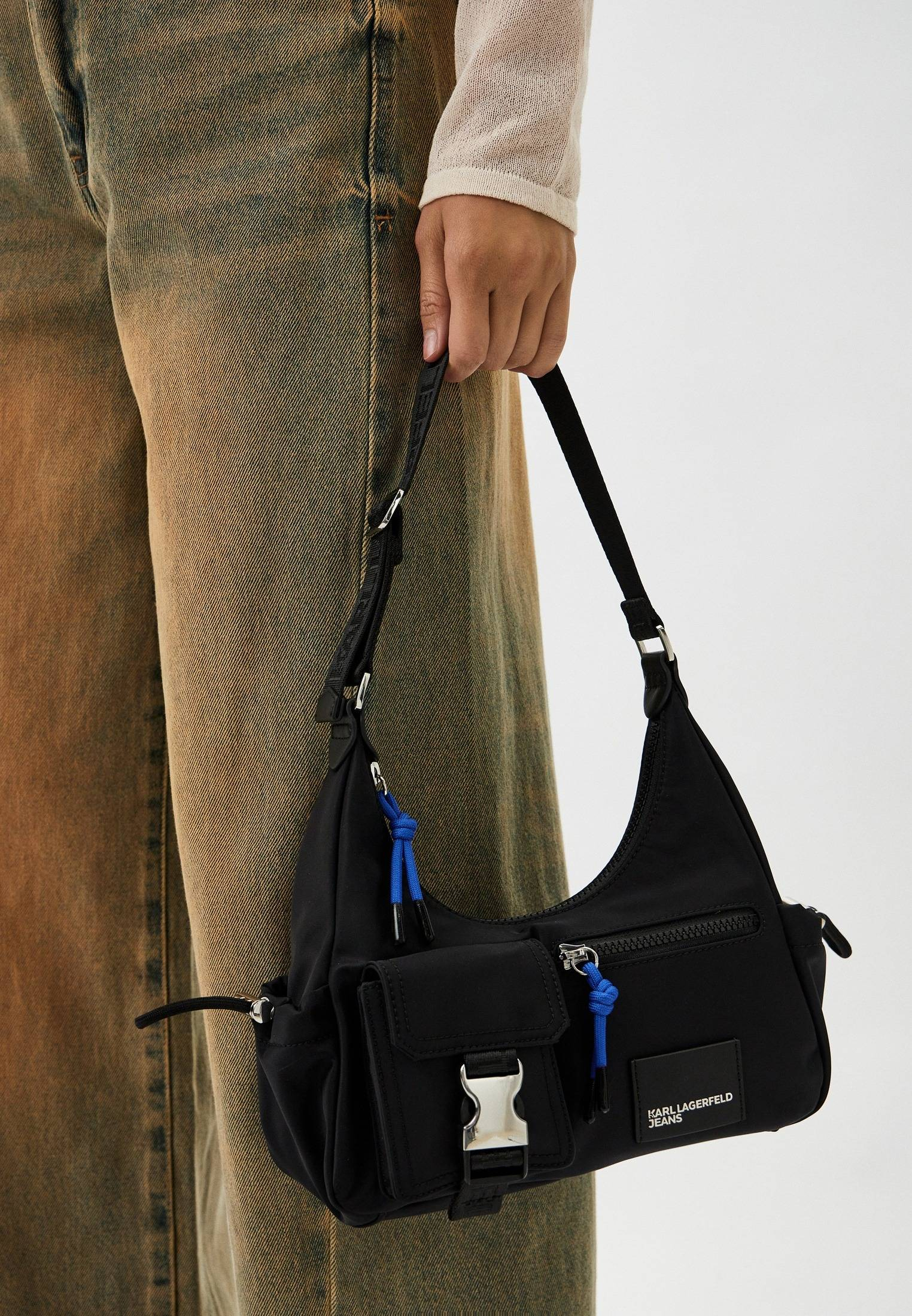 - Стильная, функциональная и универсальная — сумка на плечо от KARL LAGERFELD JEANS! Объемные карманы на внешней стороне, регулируемый ремень с фирменным логотипом, свободное внутреннее пространство с небольшим карманом, дополнительные регулируемые резинки на боковых карманах — детали, которые делают эту сумку незаменимой. Модель выполнена из плотной ткани на основе переработанных материалов. Сумка застегивается на молнию с синим пуллером-шнурком. В оформлении модели использована фирменная нашивка с логотипом KARL LAGERFELD JEANS.
