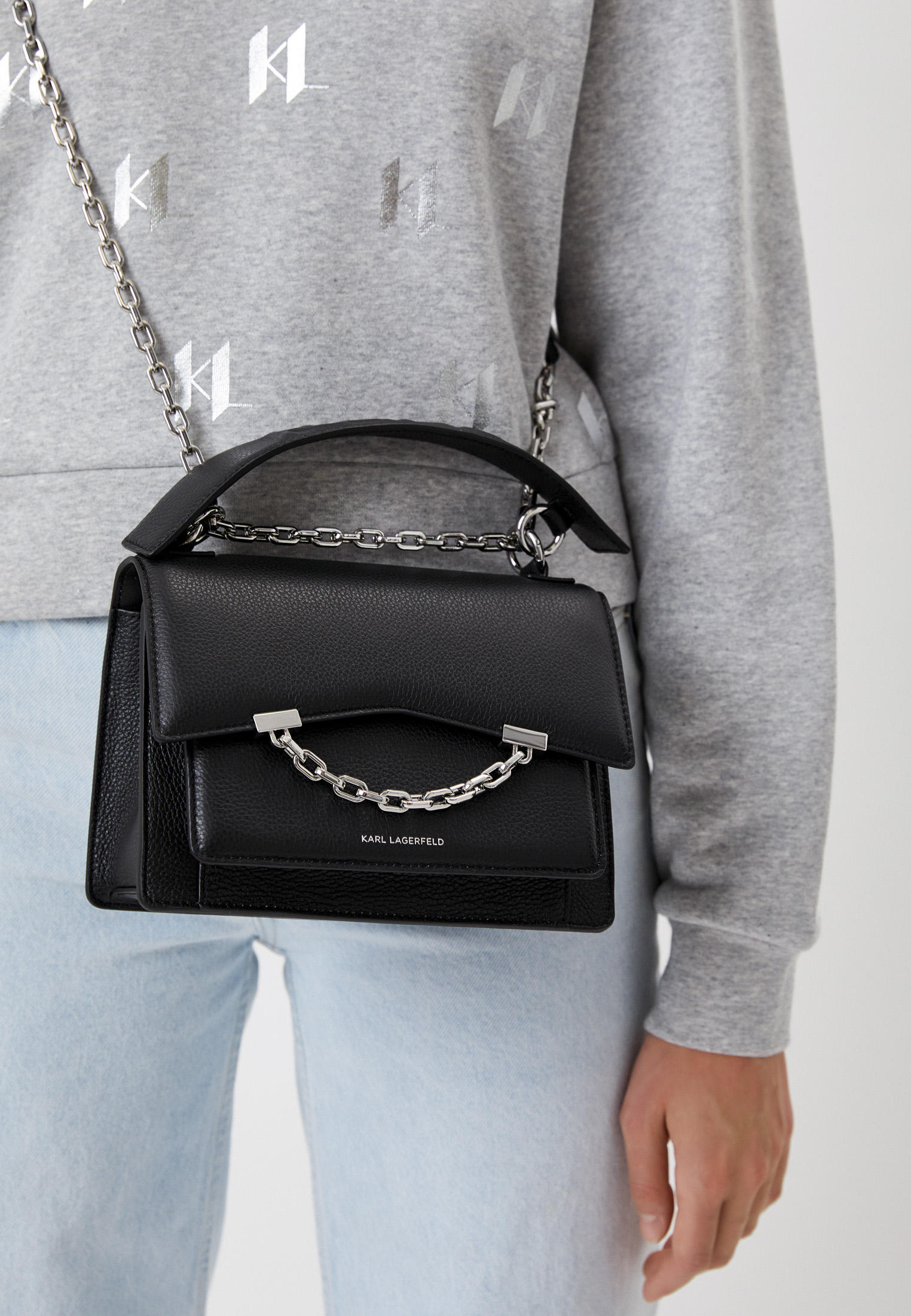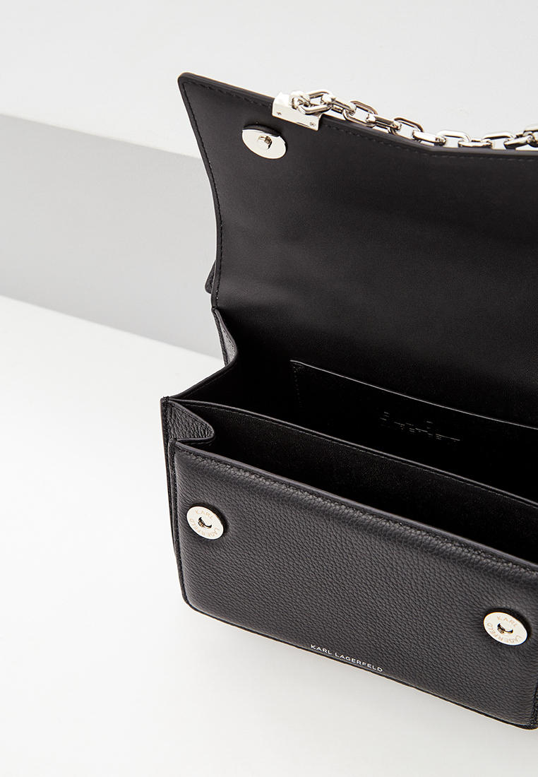 - Легендарная сумка K/Karl Seven, украшенная блестящими металлическими цепочками, дополнит повседневный или коктейльный образ — ее можно носить через плечо как повседневную сумку, либо продеть руку сквозь цепочку на клапане и носить сумку как вечерний клатч. Выполнена из 100% натуральной кожи черного цвета премиального качества. Модель в жестком корпусе с фигурным клапаном и широкой верхней ручкой, а также с длинным плечевым ремнем-цепочкой, которые можно отстегивать. Внутри есть 2 отделения и плоский карман для карт. Длина плечевого ремня 57 см.