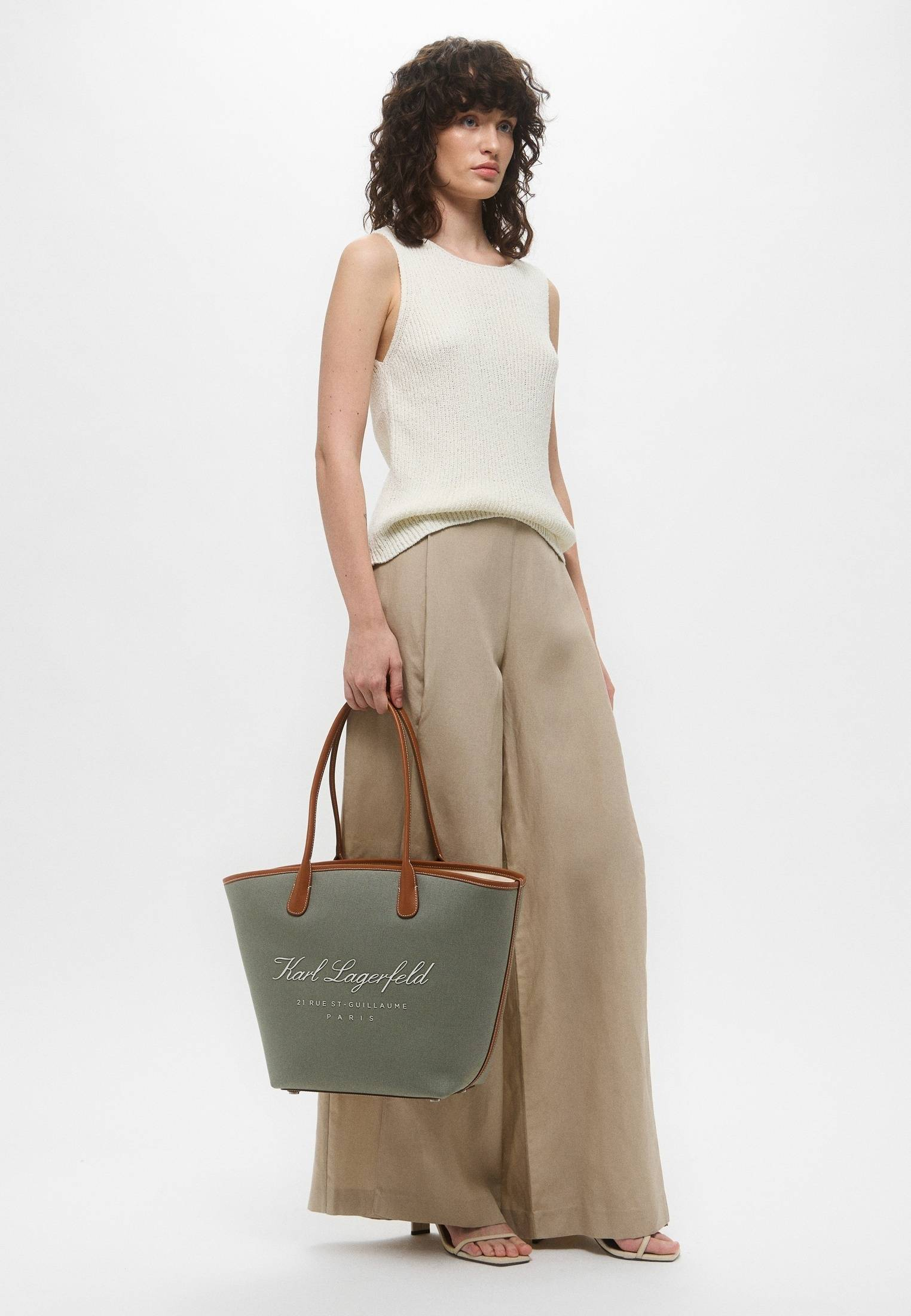- Вместительная холщовая сумка-тоут Karl Lagerfeld станет идеальным аксессуаром для летнего отдыха. Структурированные двойные ручки и контрастный переплет создают классический винтажный образ, а изящные логотипы эффектно дополняют его. Внутренняя сумка на шнурке обеспечивает надежное хранение предметов первой необходимости. Внутреннее отделение дополнено небольшим карманом на молнии. Металлические ножки на дне сумки защищают нижнюю часть изделия от повреждений.