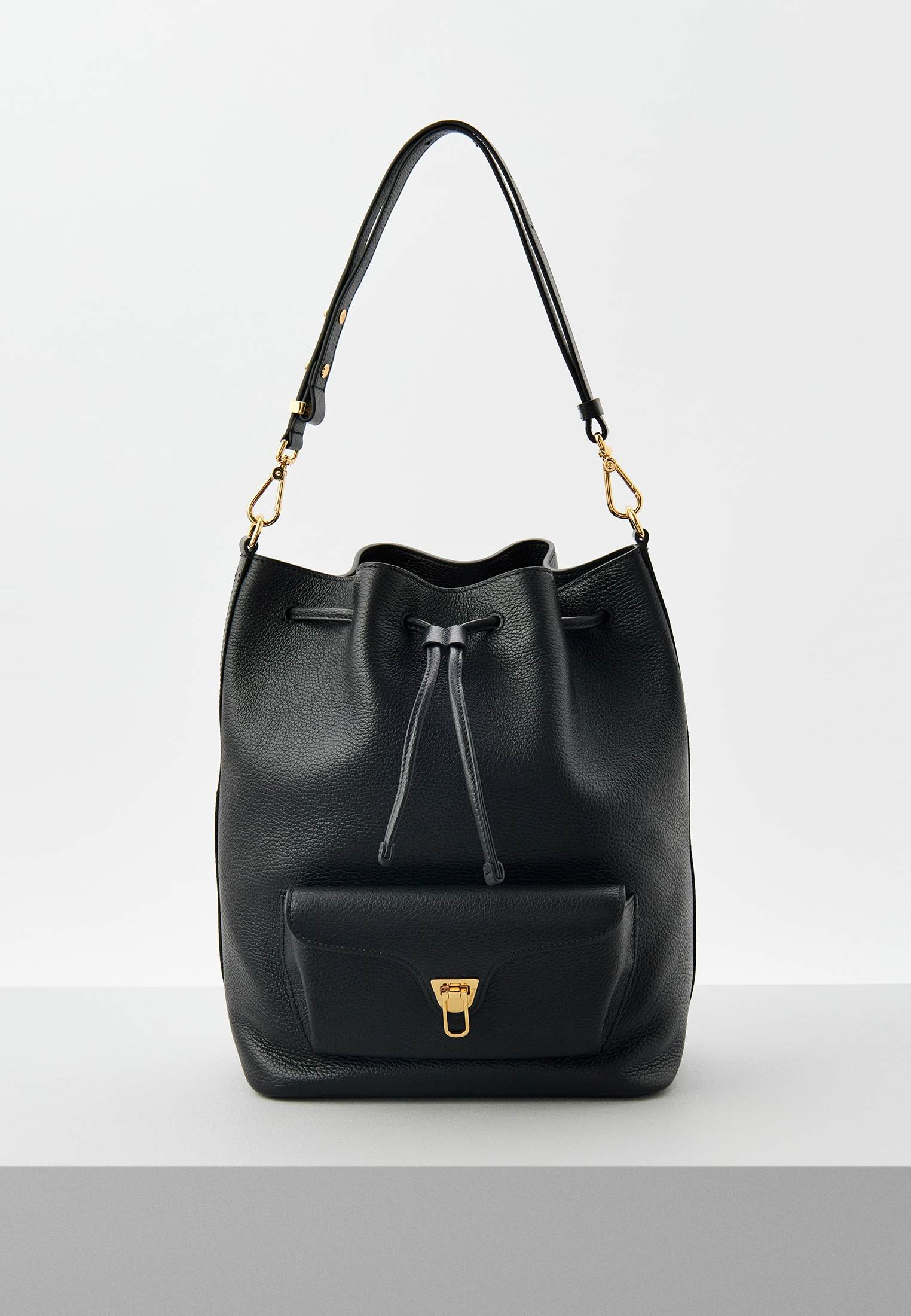 - Вместительная сумка-ведро из линейки Coccinelle Beat — это идеальное сочетание практичности и современного минималистичного дизайна. Аксессуар выполнен из натуральной зернистой кожи, прошедшей специальную обработку для сохранения мягкости. Это очень прочный материал, который не требует особого ухода и прекрасно подходит для ваших стильных образов на каждый день. Модель имеет одно вместительное отделение с внутренним карманом на молнии, регулируемую ручку и внешний карман. Сумка затягивается на шнурок.