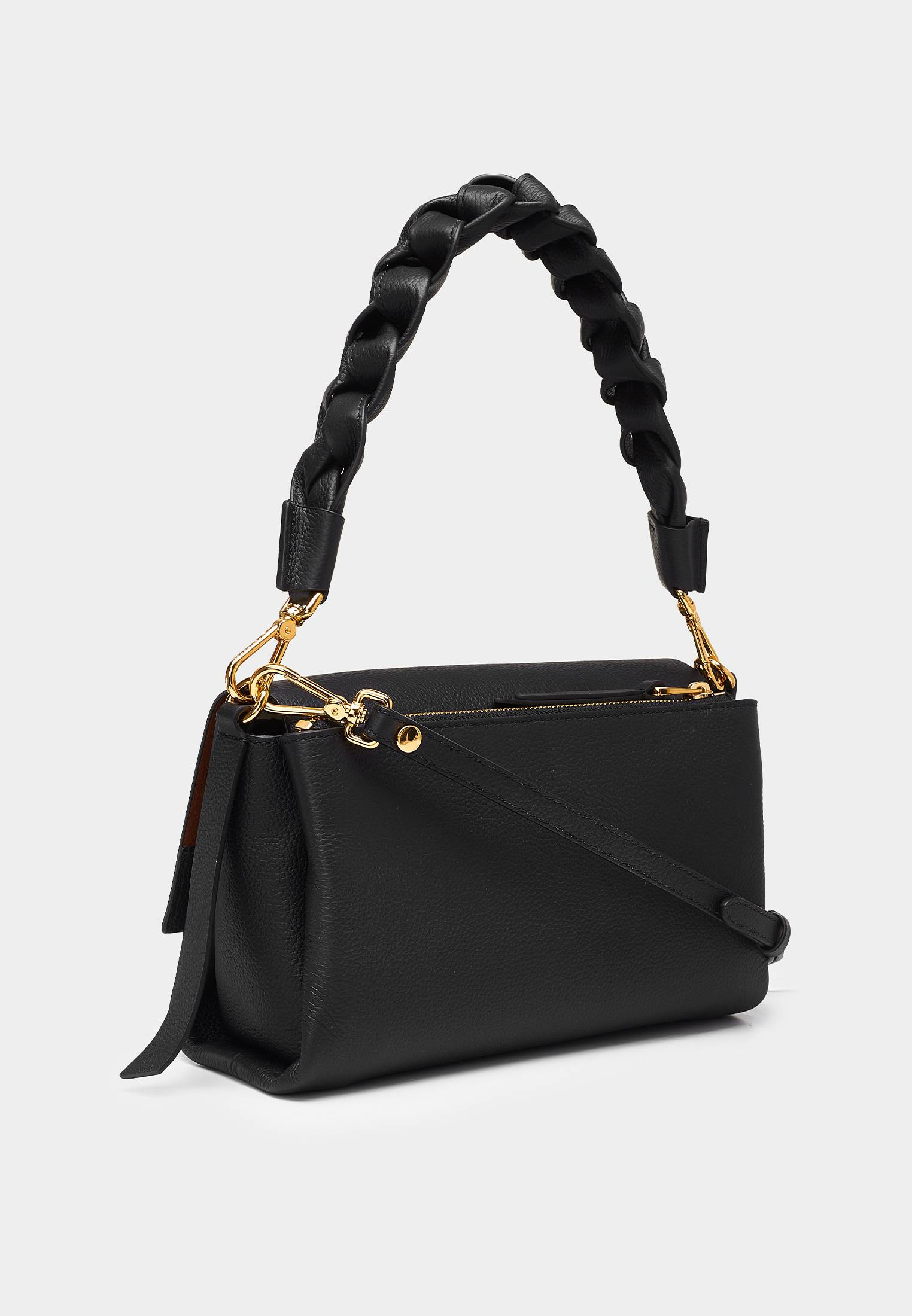 - Сумка из линии Boheme отличается мягкой формой и особо прочной кожей с зернистой фактурой. Кожа подвергается специальной обработке, за счет чего становится устойчивой к заломам и мелким повреждениям, сохраняя природную мягкость. Украшением сумки стала массивная плетеная косичкой ручка, которую можно отстегивать и носить эту модель как кросс-боди на длинном плечевом ремешке. Сумка имеет отделение на молнии и отделение на магнитном клапане. В оформлении модели использован фирменный логотип бренда.