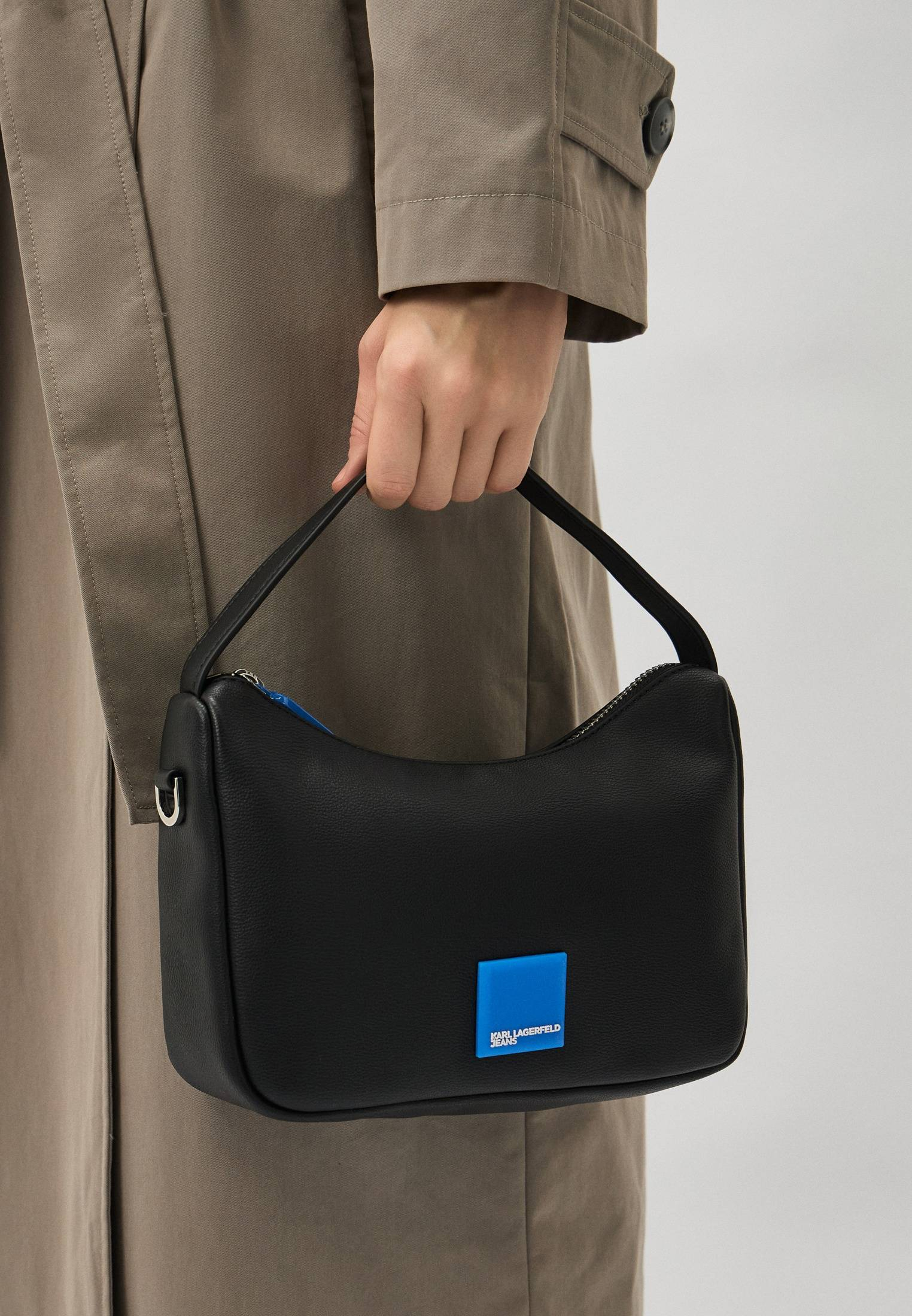 - Создана, чтобы подчеркнуть ваш индивидуальный стиль — сумка на плечо, выполненная из искусственной зернистой кожи. Модель имеет удобную ручку и съемный регулируемый ремешок-тесьму с фирменным логотипом. Внутренняя организация сумки — свободное пространство и небольшой карман на молнии. В оформлении модели использован контрастный квадратный логотип KARL LAGERFELD JEANS. Сумка застегивается на молнию с крупным пуллером.