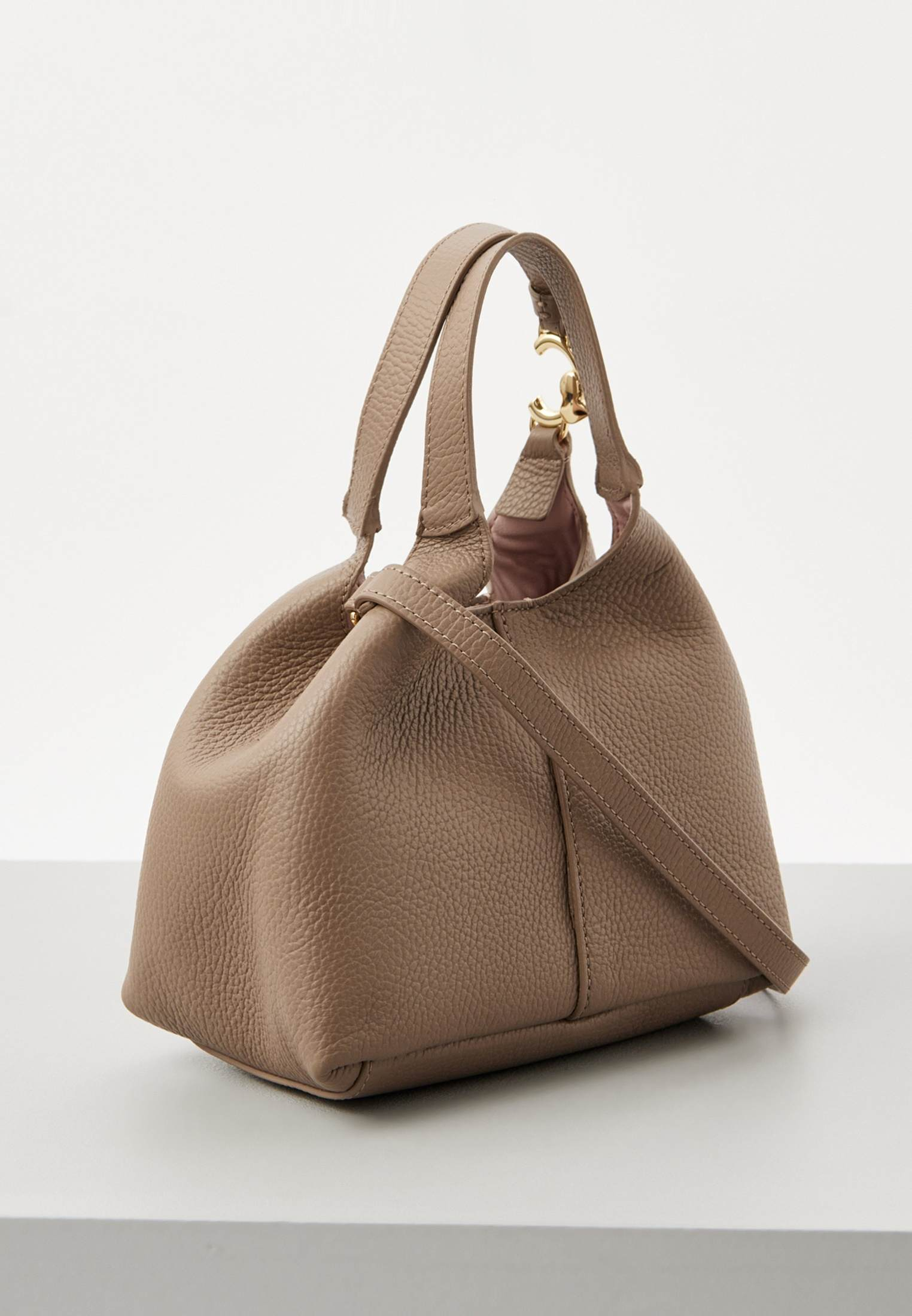 - Женственная и непринужденная бежевая сумка Coccinelle C-Easy представляет собой небольшую модель на удобных ручках. Отличительная особенность — металлический логотип бренда на одной из ручек. Эта модель изготовлена из натуральной зернистой кожи, прошедшей специальную обработку для сохранения мягкости. Это очень прочный материал, который не требует особого ухода и прекрасно подходит для ежедневного использования. Сумка имеет одно отделение, застегивается на магнит, дополнена съемным плечевым ремнем.