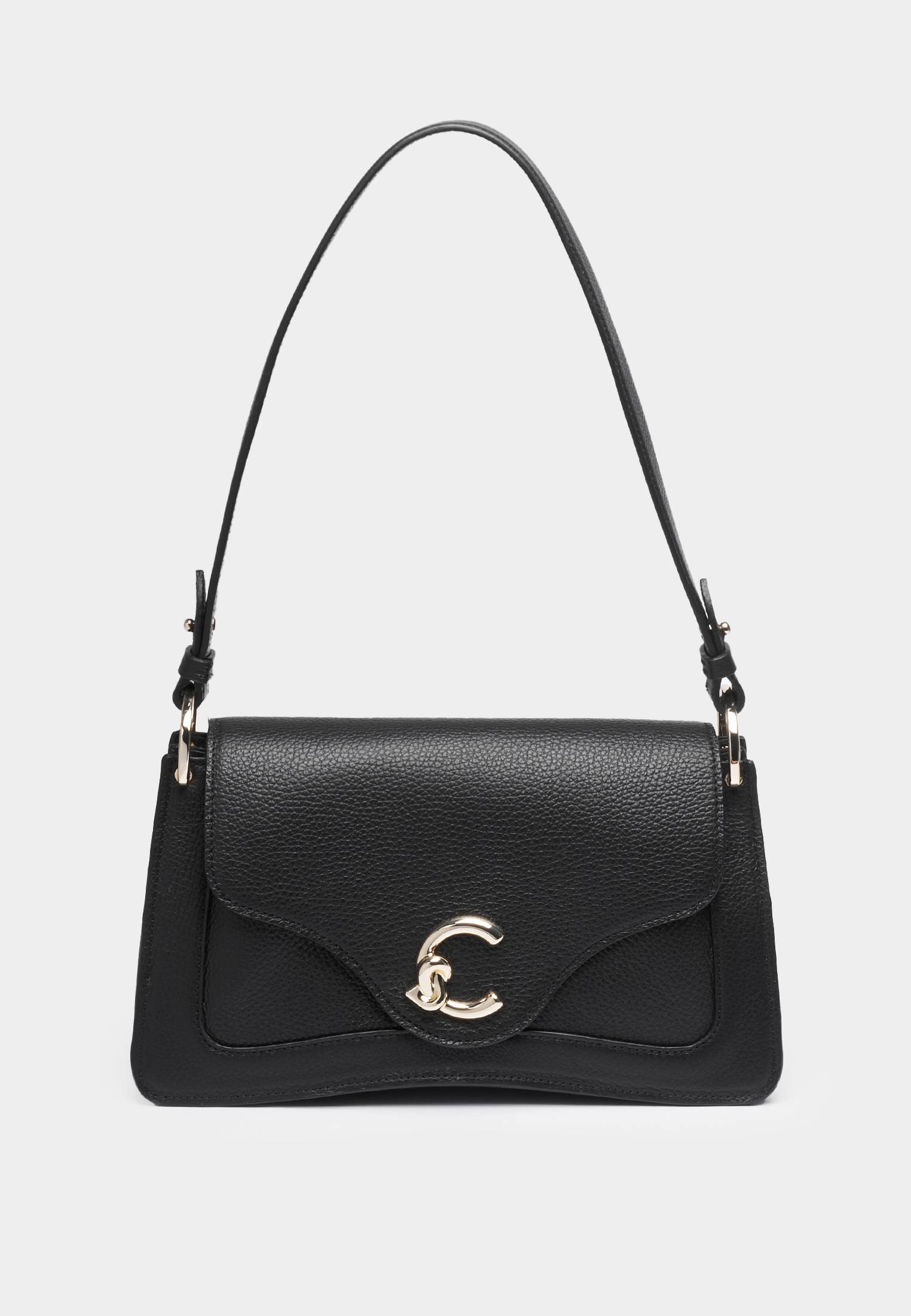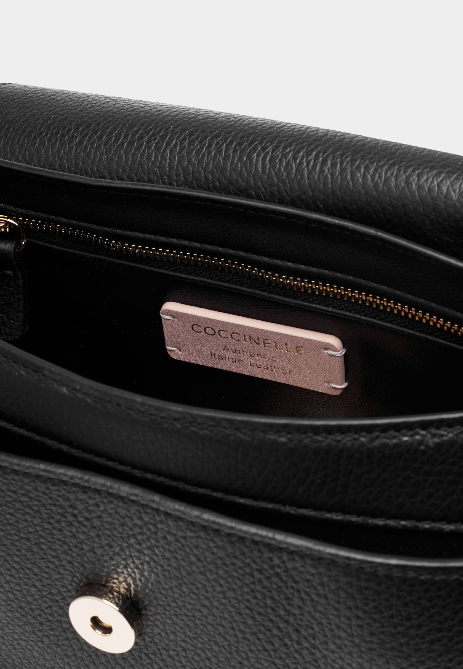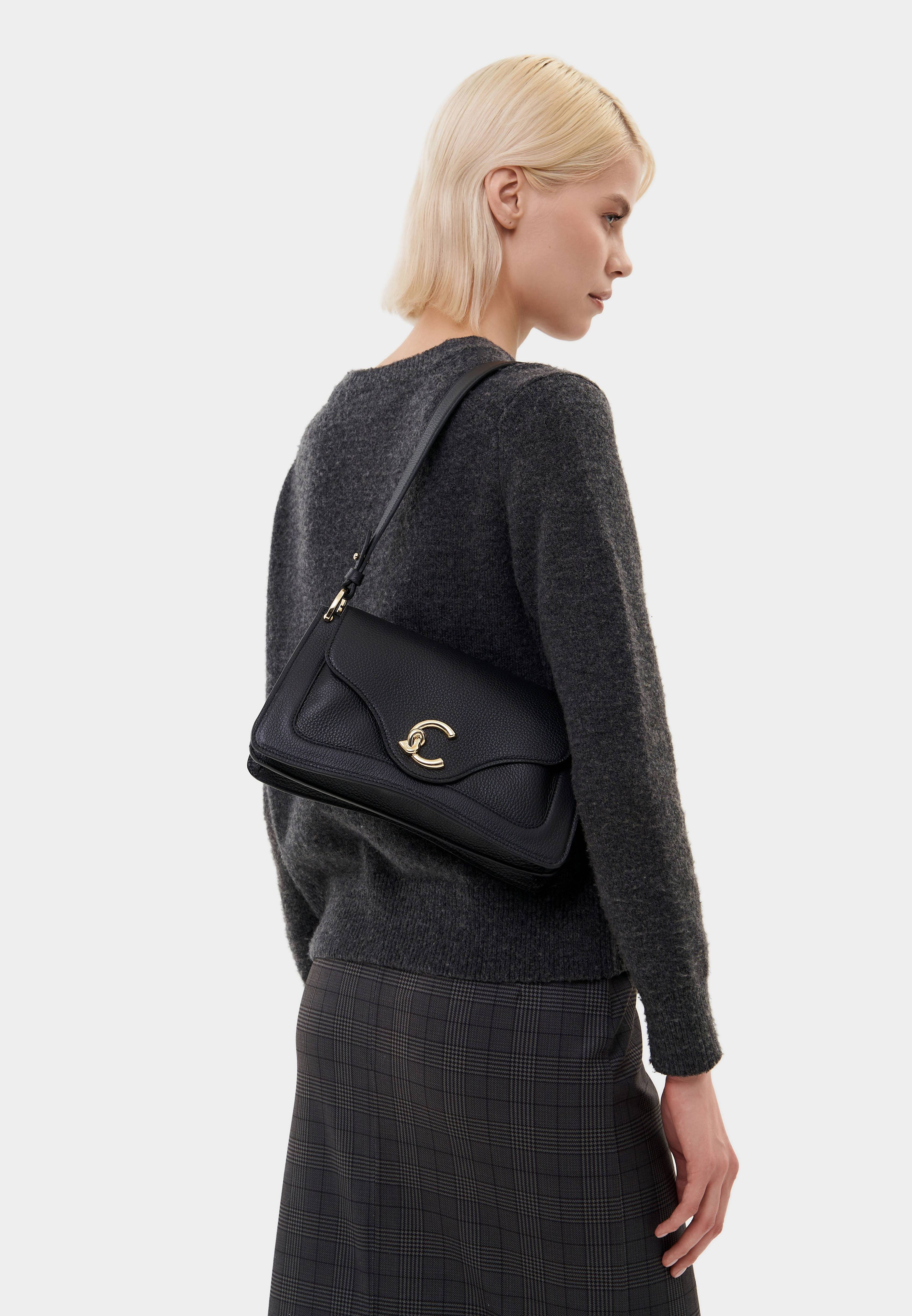 - К бренду Coccinelle присоединилась новая модель — сумка Coccinelle C-Me. Логотип бренда в форме буквы «C» обвивает медиатор — культовый элемент Coccinelle, символизирующий связь между прошлым и настоящим в жизни женщины. Дизайн сумки отличается геометрическими линиями и элегантными изгибами. Изделие выполнено из натуральной зернистой кожи, прошедшей специальную обработку для сохранения мягкости. Это очень прочный материал, который не требует особого ухода и прекрасно подходит для ваших стильных образов на каждый день. Сумка имеет удобную ручку, одно отделение, карман на молнии внутри и карман снаружи, застегивается на магнитную кнопку. Модель дополнена съемным плечевым ремнем.