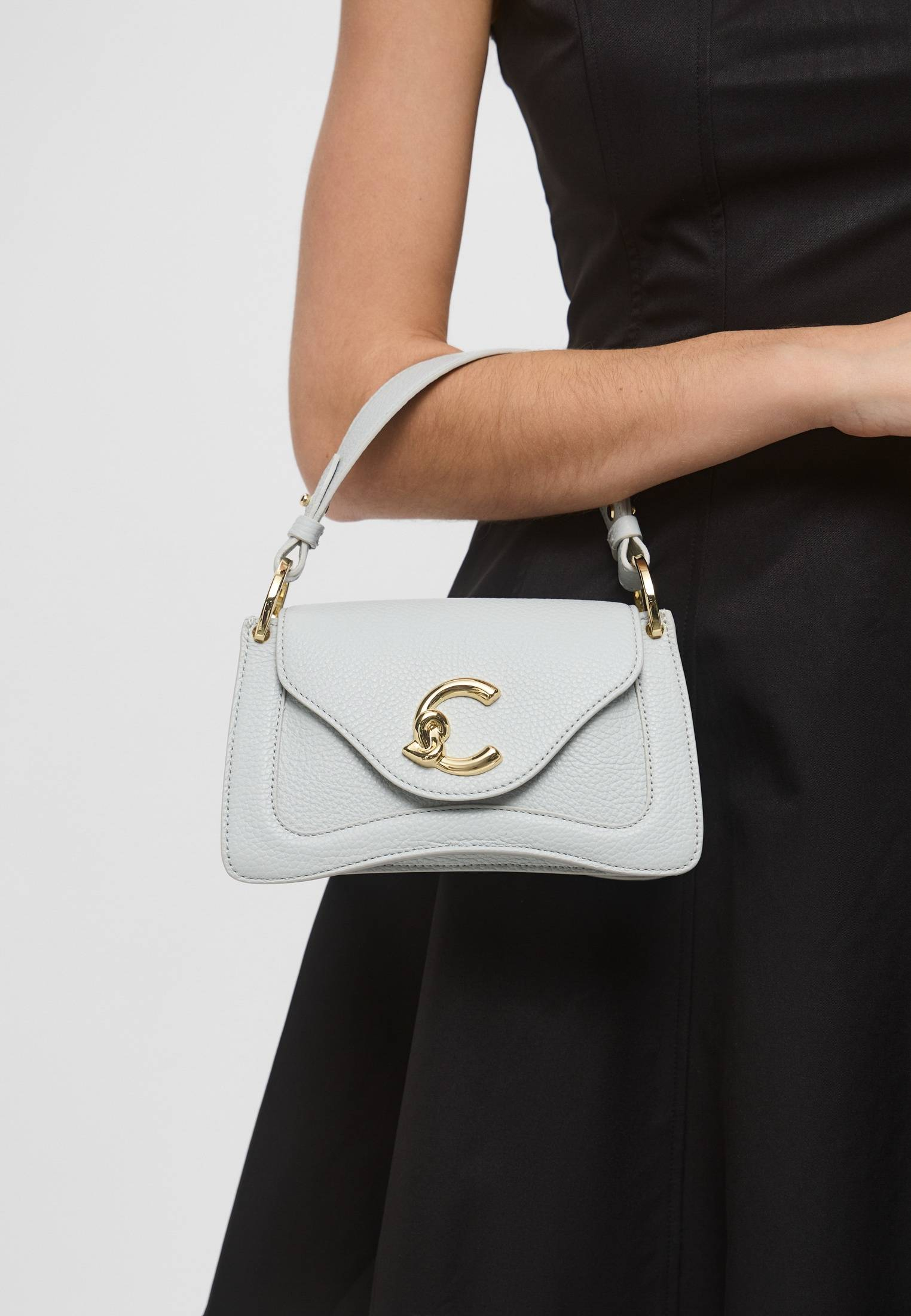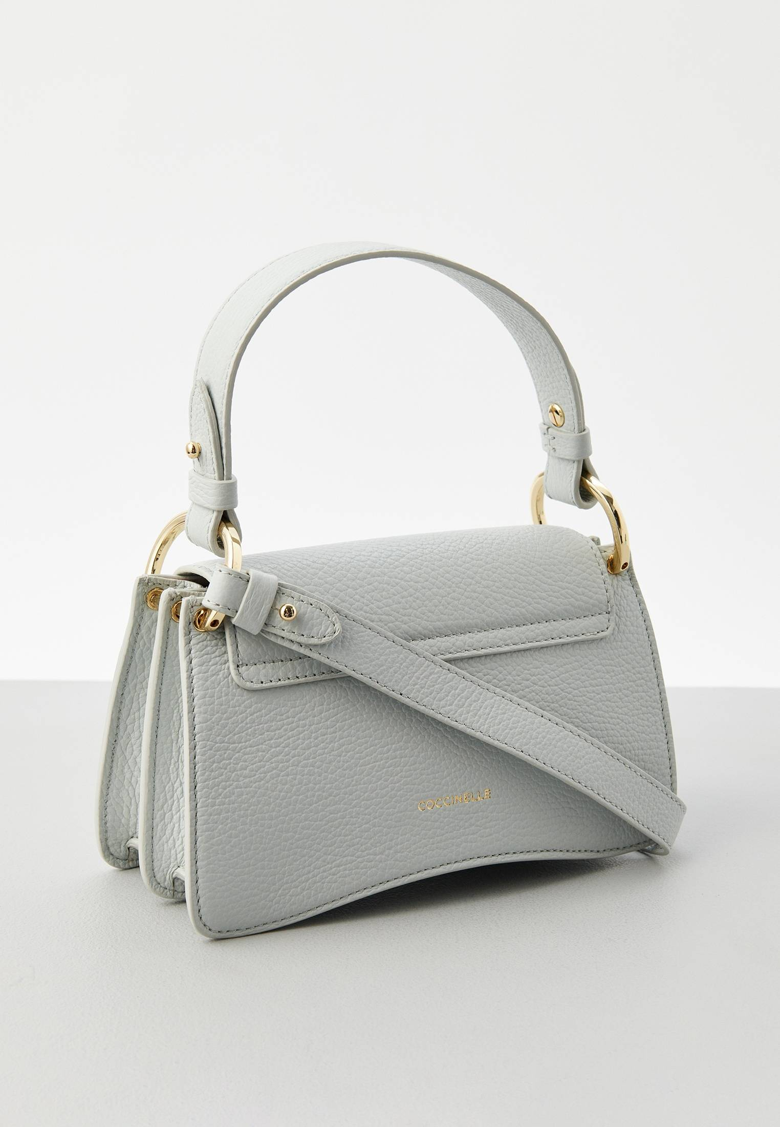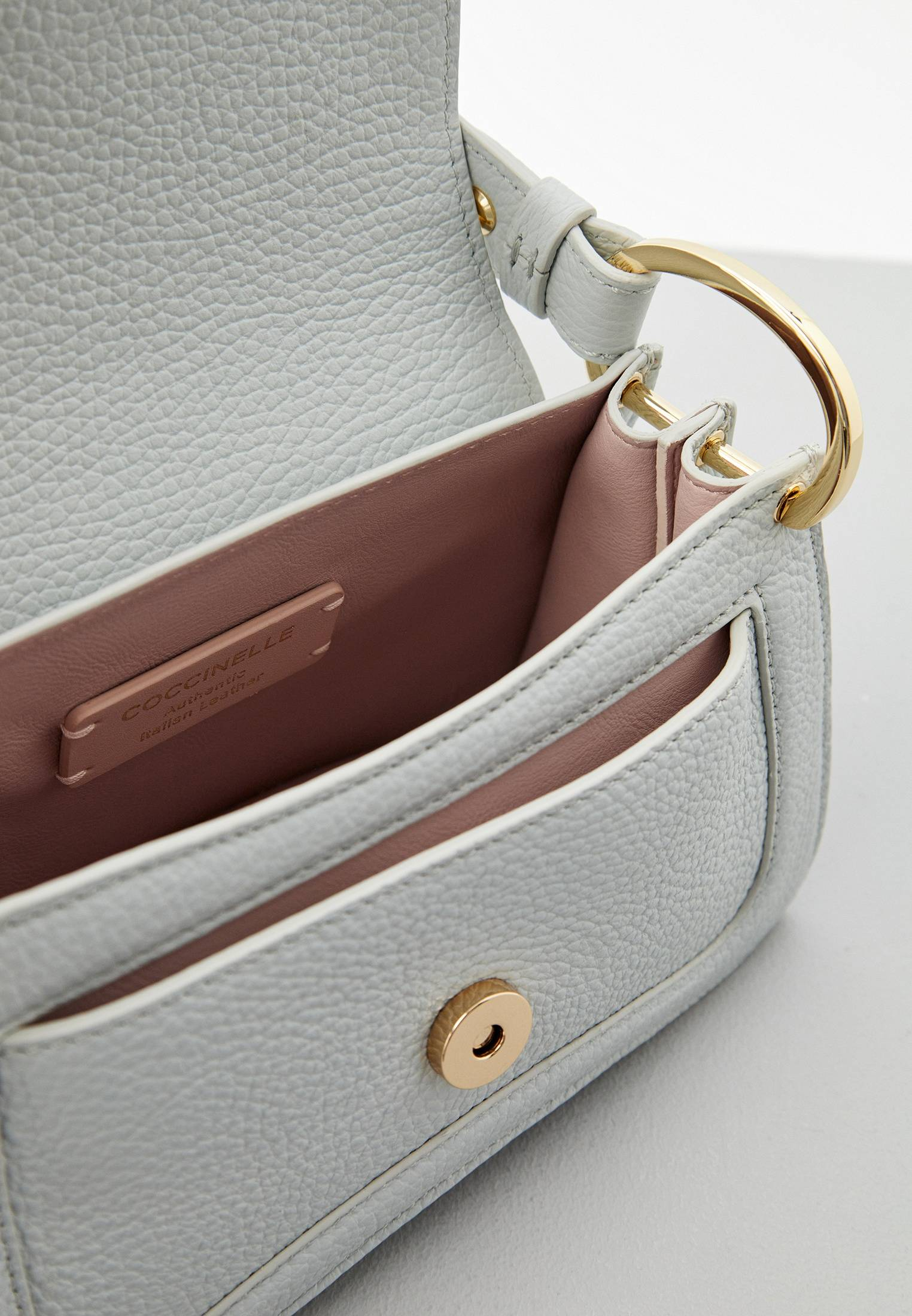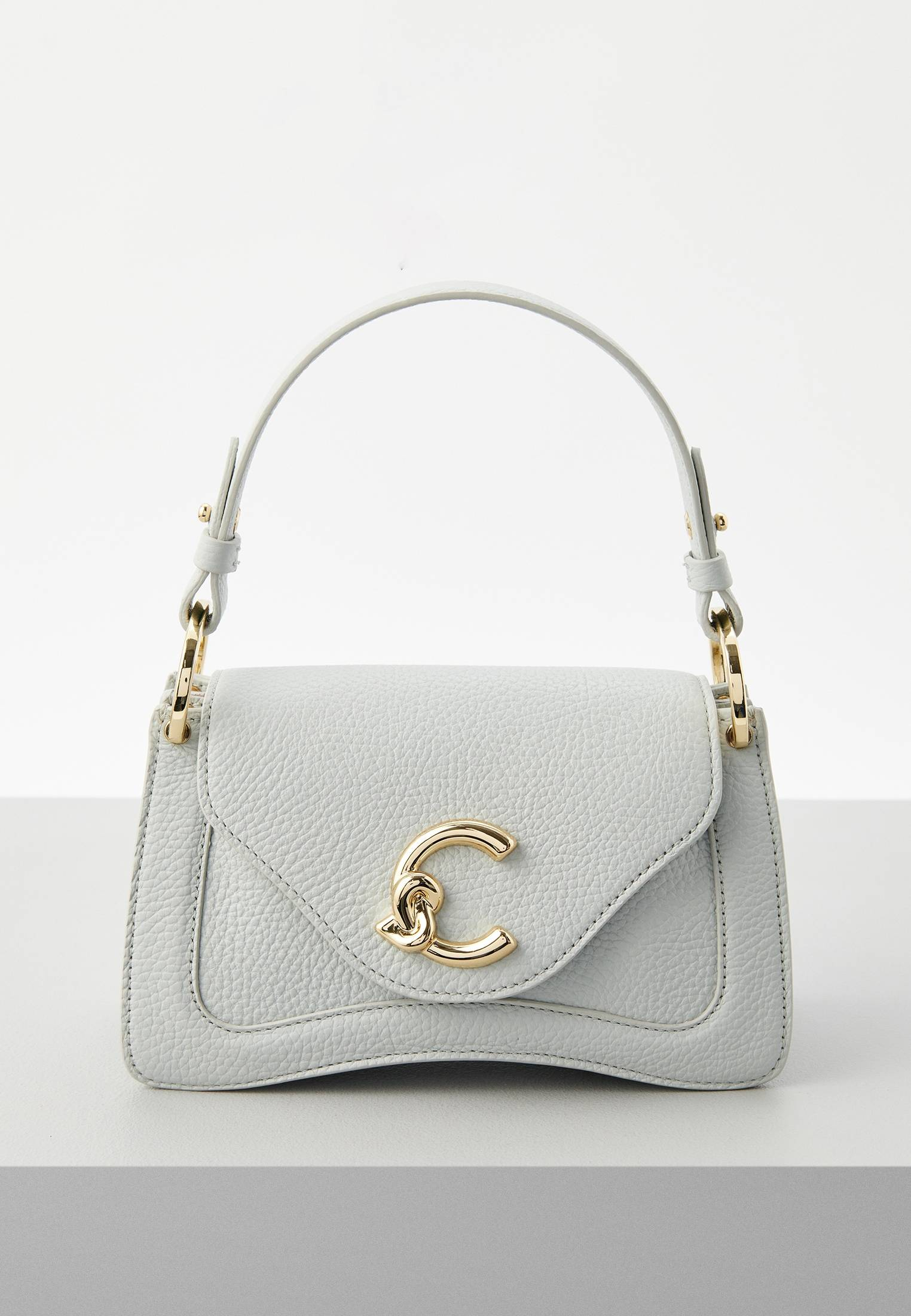 - К бренду Coccinelle присоединилась новая модель — светло-голубая сумка Coccinelle C-Me. Логотип бренда в форме буквы «C» обвивает медиатор — культовый элемент Coccinelle, символизирующий связь между прошлым и настоящим в жизни женщины. Дизайн сумки отличается геометрическими линиями и элегантными изгибами. Изделие выполнено из натуральной зернистой кожи, прошедшей специальную обработку для сохранения мягкости. Это очень прочный материал, который не требует особого ухода и прекрасно подходит для ваших стильных образов на каждый день. Сумка имеет удобную ручку, одно отделение, карман на молнии внутри и карман снаружи, застегивается на магнитную кнопку. Модель дополнена съемным плечевым ремнем.