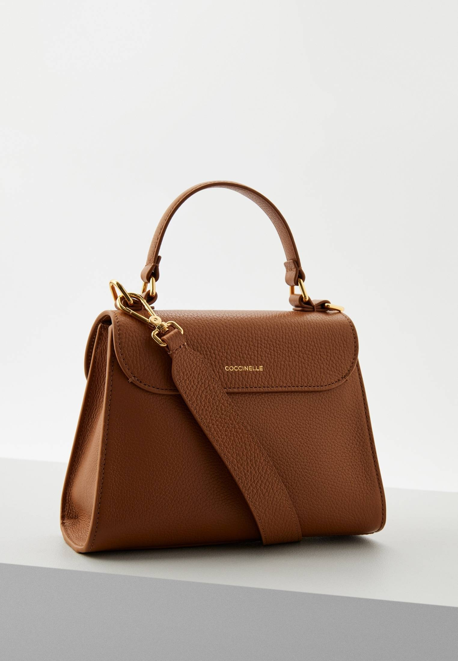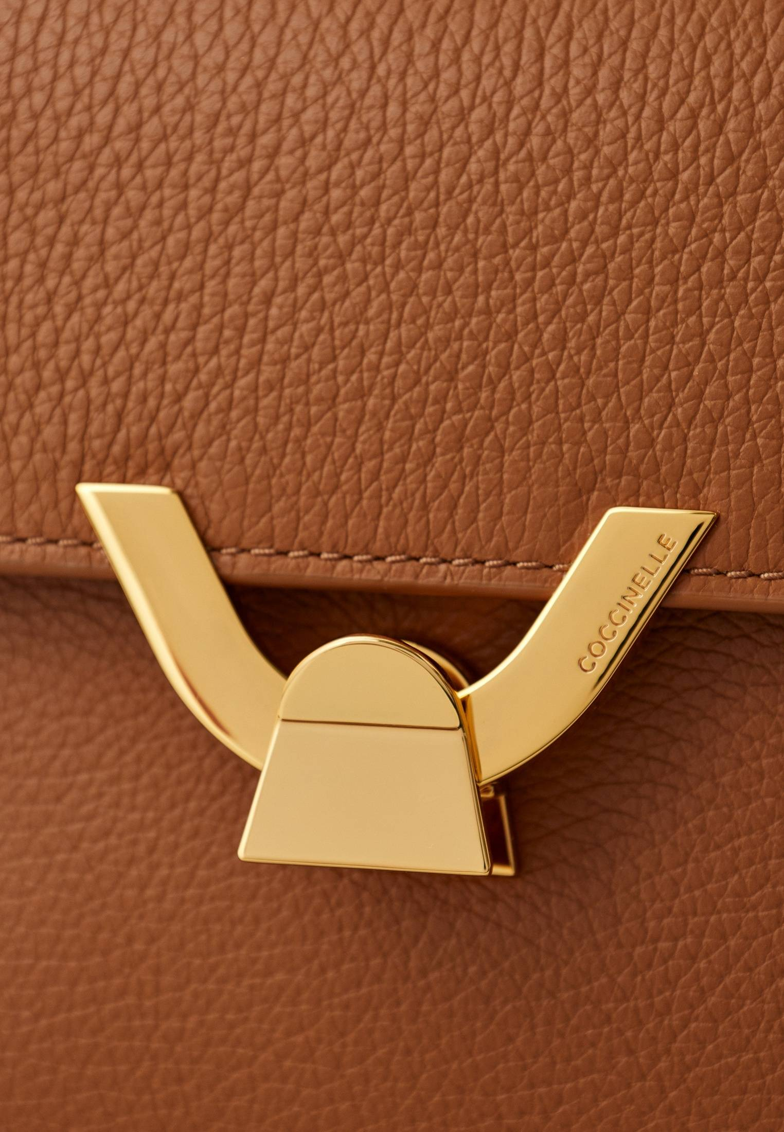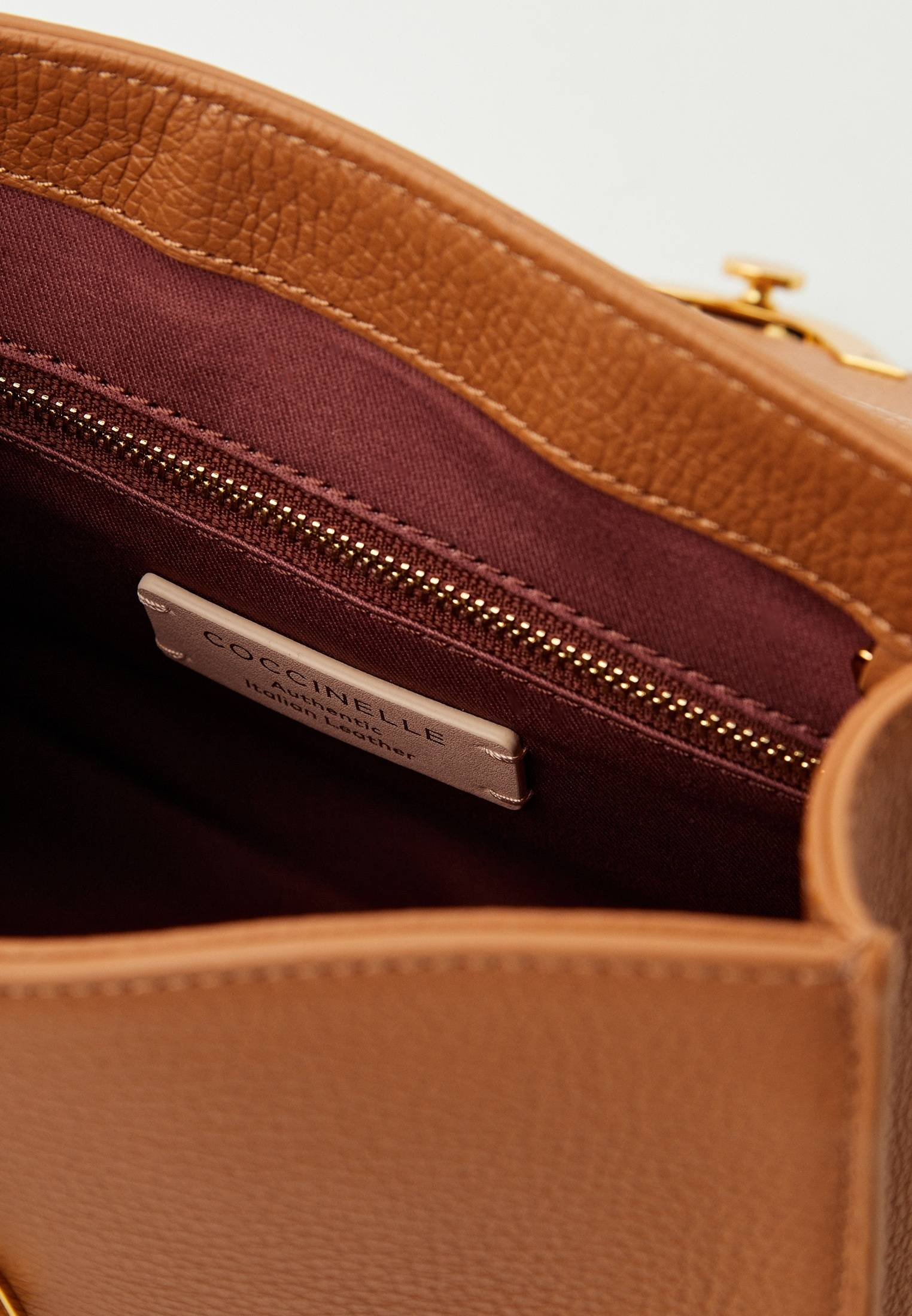 - Женская темно-бежевая сумка трапециевидной формы Coccinelle Dew — стильный аксессуар с минималистичным дизайном. Главная акцентная деталь модели — удобная золотистая застежка на магнитной кнопке. Изделие выполнено из натуральной зернистой кожи, прошедшей специальную обработку для сохранения мягкости. Это очень прочный, устойчивый к мелким повреждениям материал, который не требует особого ухода. Сумка прекрасно впишется в ваши повседневные, офисные, вечерние или праздничные образы. Модель имеет удобную ручку, съемный регулируемый плечевой ремень и одно вместительное отделение с дополнительным карманом на молнии.