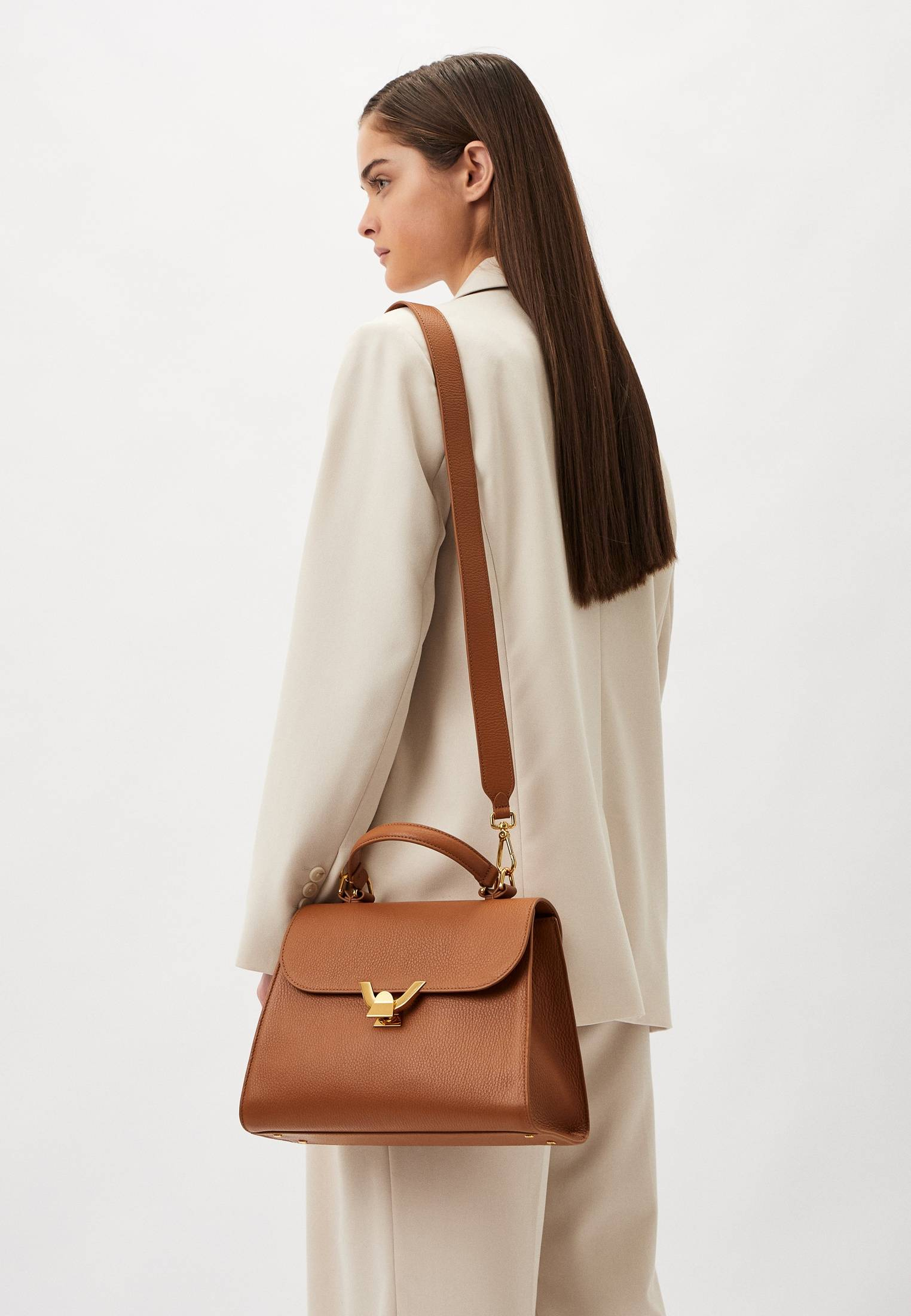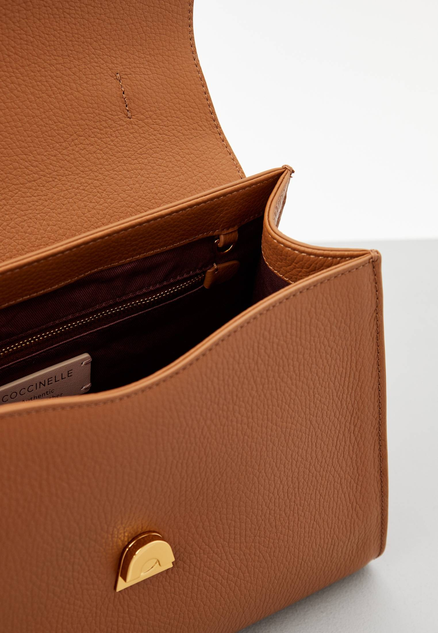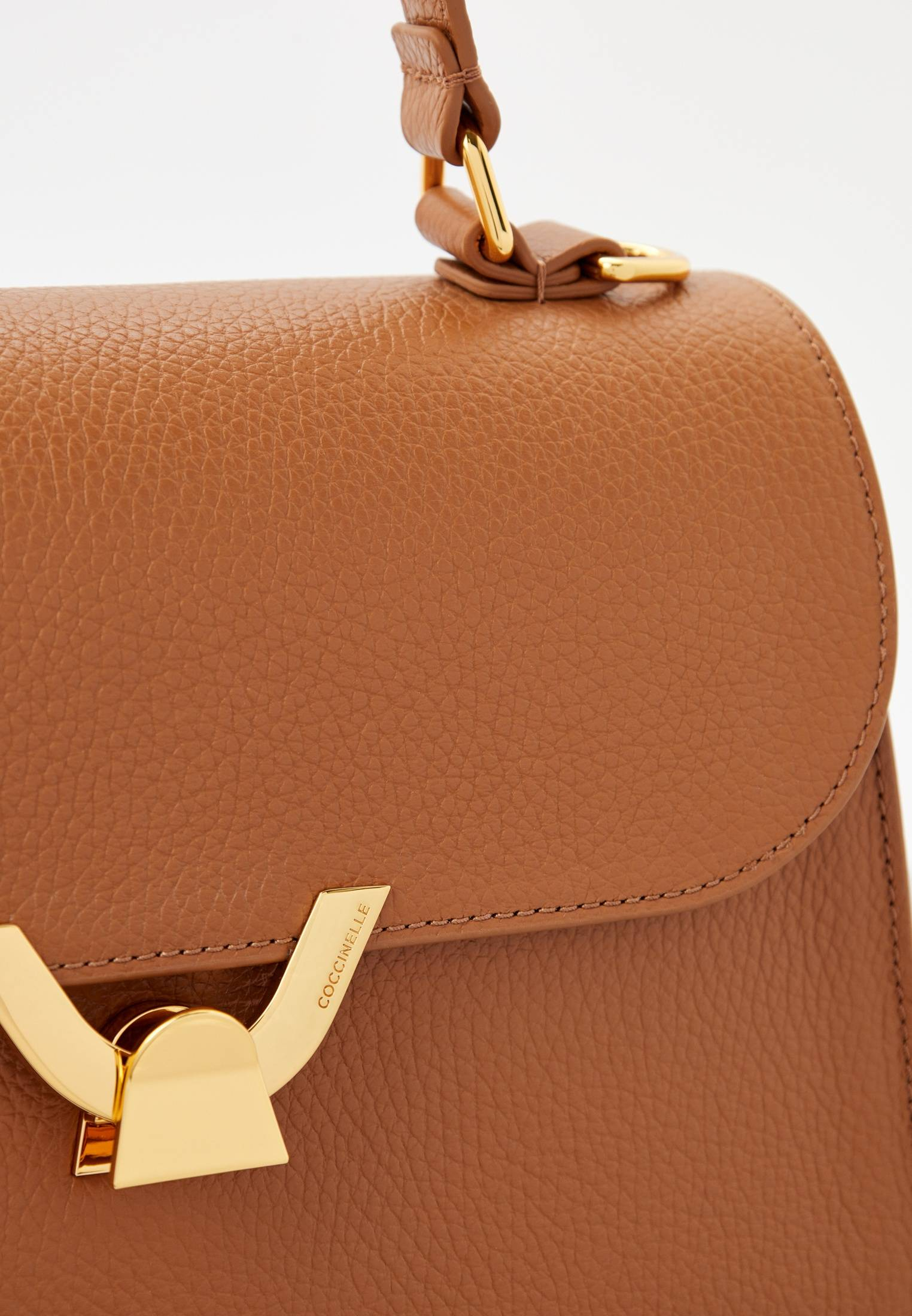 - Женская темно-бежевая сумка трапециевидной формы Coccinelle Dew — стильный аксессуар с минималистичным дизайном. Главная акцентная деталь модели — удобная золотистая застежка на магнитной кнопке. Изделие выполнено из натуральной зернистой кожи, прошедшей специальную обработку для сохранения мягкости. Это очень прочный, устойчивый к мелким повреждениям материал, который не требует особого ухода. Вместительная сумка прекрасно впишется в ваши повседневные, офисные, вечерние или праздничные образы. Модель имеет удобную ручку, съемный регулируемый плечевой ремень и одно вместительное отделение с дополнительным карманом на молнии.
