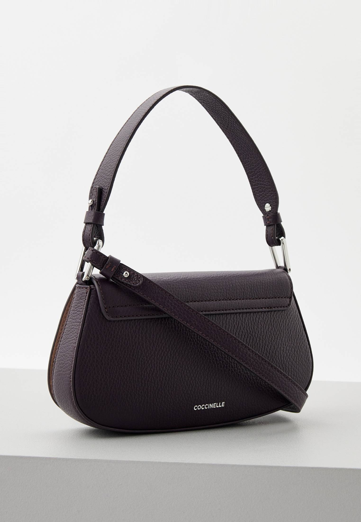 - Утонченная сумка-багет Coccinelle Myrtha в новом темно-фиолетовом цвете прекрасно впишется в любой ваш повседневный, деловой или вечерний образ благодаря современному и минималистичному дизайну. Модель выполнена из натуральной зернистой кожи, прошедшей специальную обработку для сохранения мягкости. Материал мягок, пластичен и устойчив к мелким механическим повреждениям. Сумка имеет одно отделение, удобную ручку и съемный плечевой ремень, поэтому вы можете носить её в руке, на плече или как модель кросс-боди. Изделие застегивается на магнитную кнопку. В оформлении модели использован крупный тисненый логотип бренда.