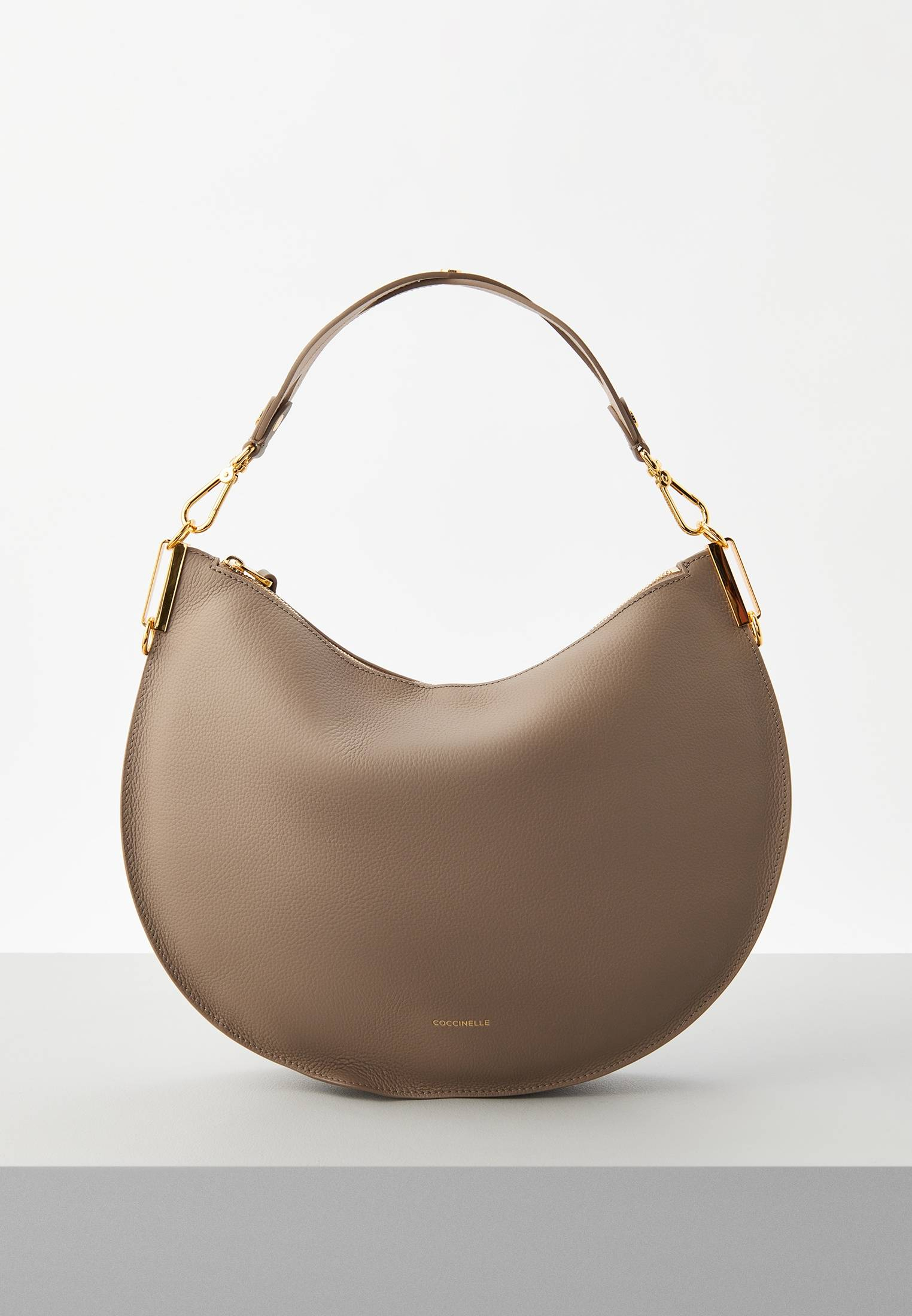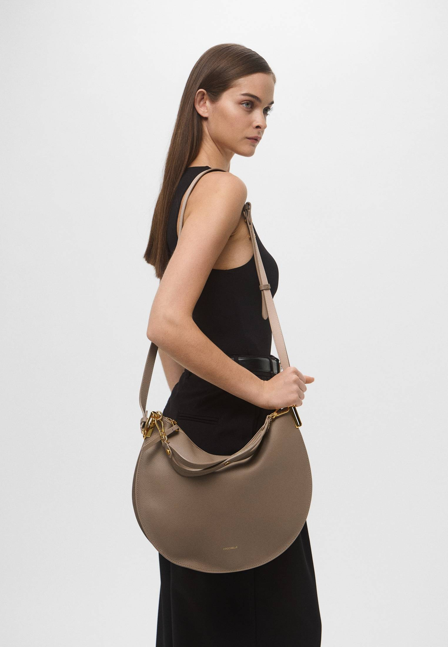 - Округлость силуэта, которая также отражена в названии, является отличительной чертой линейки Coccinelle Sunup. Вместительная модель в бежевом цвете выполнена из двусторонней натуральной кожи без подкладки. Это очень прочный, устойчивый к мелким повреждениям материал, который не требует особого ухода. Сумка имеет одно отделение на молнии и дополнительный карман внутри, а также съемную ручку и регулируемый ремень, поэтому вы можете носить её как в руке, так и через плечо.