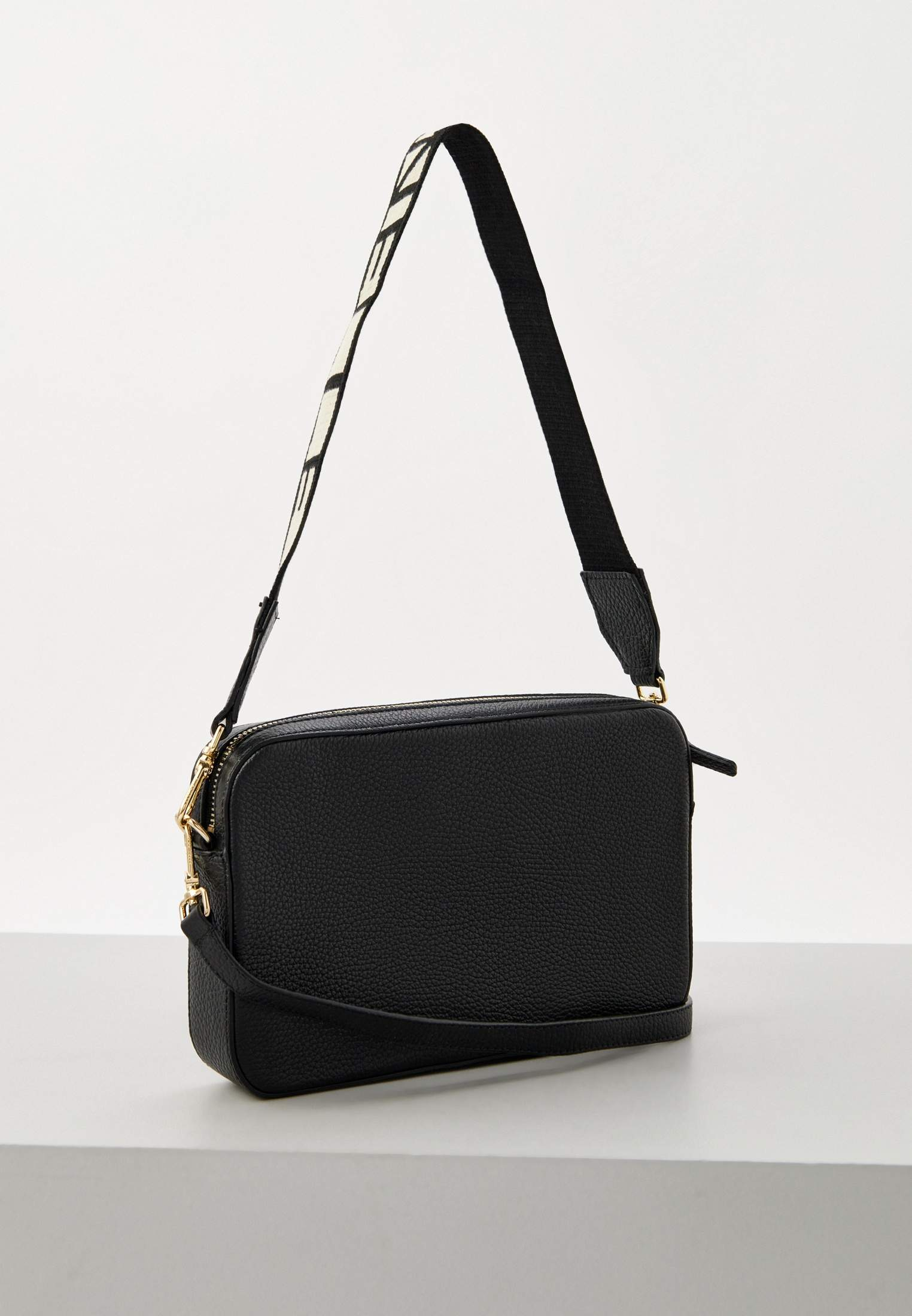 - Плавные, абсолютно гармонично выверенные линии сумки Tebe буквально зачаровывают своей лаконичностью. Черная модель camera-bag отличается жестким корпусом прямоугольной формы, выполненным из натуральной зернистой кожи. Кожа прошла специальную обработку, за счет чего стала устойчивой к заломам и мелким повреждениям, сохраняя природную мягкость. Фурнитура с блестящим покрытием не темнеет и долгое время сохраняет прекрасный внешний вид. Сумка украшена золотистым принтованным логотипом по центру. Съемный плечевой ремешок сделан из текстиля с крупными логотипами в технике интарсия.