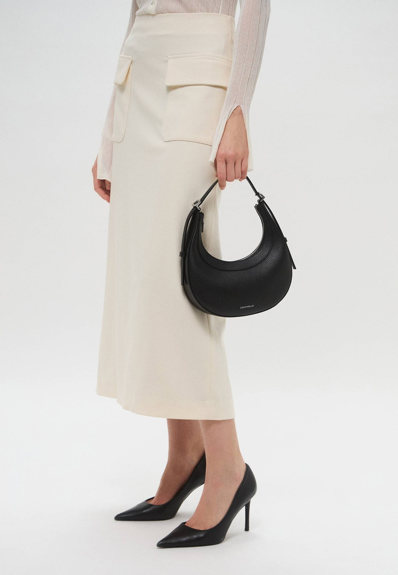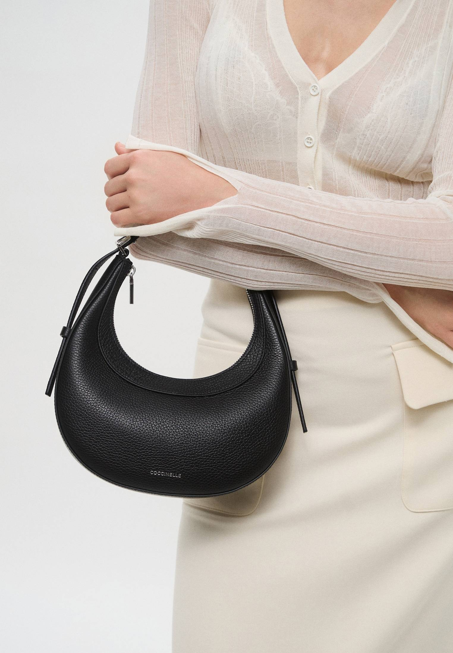 - Coccinelle WHISPER — это небольшая сумка с минималистичным дизайном, отличающаяся лаконичным силуэтом в форме полумесяца. Изделие выполнено из натуральной зернистой кожи, прошедшей специальную обработку для сохранения мягкости. Это очень прочный, устойчивый к мелким повреждениям материал, который не требует особого ухода. Сумка имеет одно отделение на молнии и регулируемый плечевой ремень. Благодаря универсальному цвету и размеру модель прекрасно впишется как в повседневные, так и в более официальные образы.