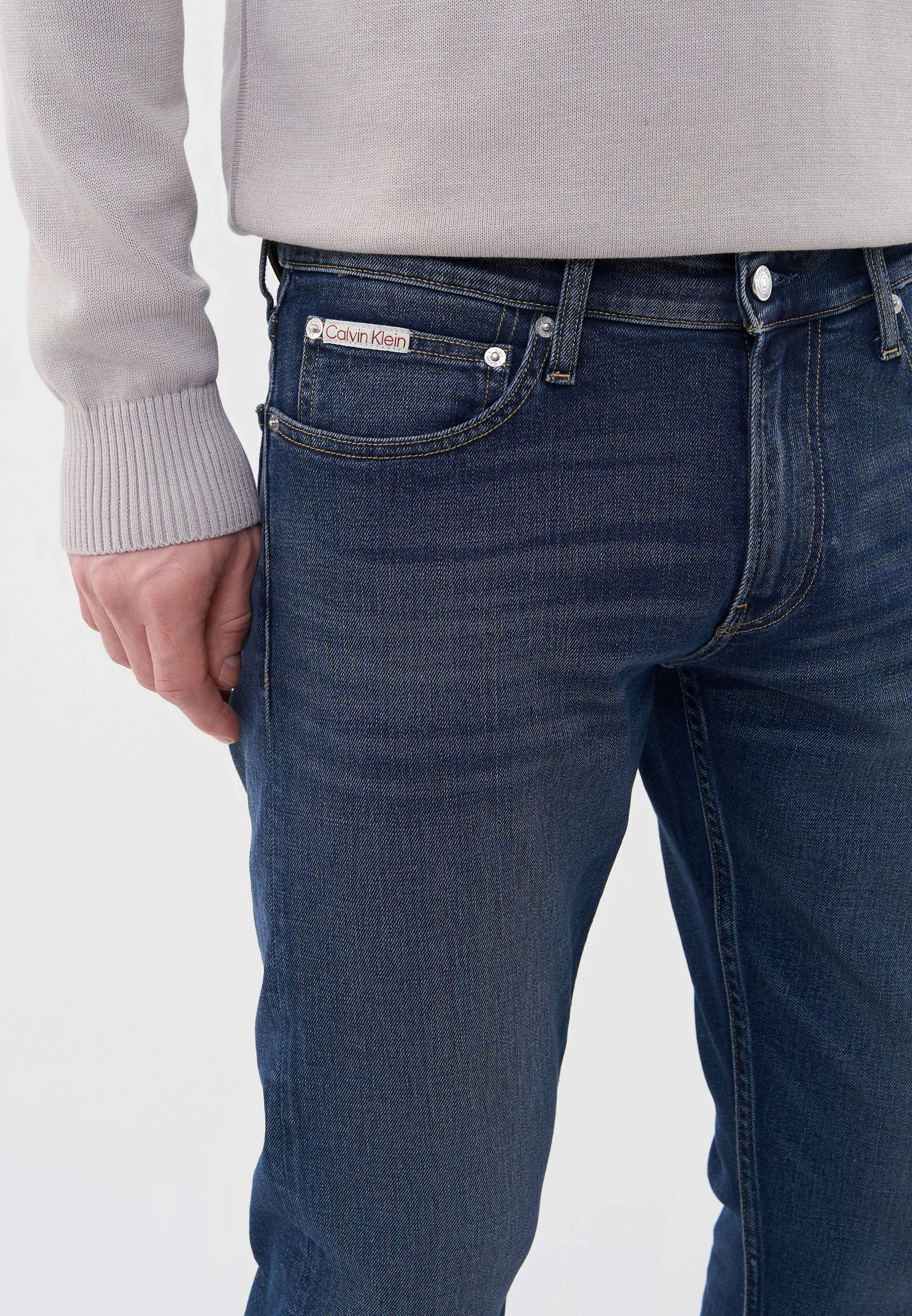 - Синие джинсы прямого кроя — база любого мужского гардероба. Эта модель с минималистичным дизайном прекрасно впишется в любой образ. Выполненные из плотного денима с небольшим содержанием эластичных волокон, джинсы Calvin Klein обеспечивают комфорт и свободу при каждом движении. Задняя часть пояса дополнена фирменной кожаной нашивкой. Джинсы имеют пять карманов, застегиваются на молнию и пуговицу. Сочетайте модель с базовыми футболками, рубашками, свитерами и другим верхом.